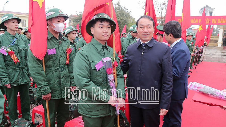 Tại Lễ giao nhận quân, đồng chí Phó Chủ tịch UBND tỉnh Trần Lê Đoài và các đồng chí thành viên Hội đồng Nghĩa vụ quân sự tỉnh, các đồng chí lãnh đạo huyện Nghĩa Hưng đã tặng hoa chúc mừng, gửi gắm niềm tin, động viên các tân binh lên đường nhập ngũ, đồng thời mong muốn các tân binh phát huy truyền thống quê hương, tinh thần của tuổi trẻ, không ngừng rèn luyện, chấp hành nghiêm kỷ luật quân đội, hoàn thành xuất sắc nhiệm vụ được giao.