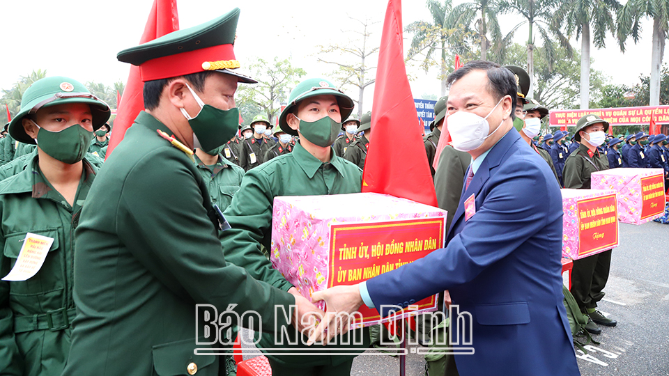 Năm nay, tỉnh Nam Định giao 2.550 nam thanh niên cho 21 đầu mối đơn vị nhận quân gồm: Bộ Tổng Tham mưu (Cục Tác chiến điện tử, Lữ đoàn 144, Đoàn Nghi lễ); Bộ Tư lệnh Thủ đô, Quân đoàn 1 (Sư đoàn 312, Trường Quân sự), Quân chủng Hải quân, Bộ Tư lệnh 86, Bộ Tư lệnh Cảnh sát biển, Bộ Tư lệnh BĐBP, Binh chủng Đặc công, Binh chủng Thông tin, Học viện Quân y, Bộ Tư lệnh Bảo vệ Lăng Chủ tịch Hồ Chí Minh, Trung tâm nhiệt đới Việt Nga, Quân khu 3 (gồm các đơn vị: Cục Hậu cần, Sư đoàn 395, Lữ đoàn 214, Lữ đoàn 242, Lữ đoàn 273 và Bộ CHQS tỉnh Nam Định) và 170 nam thanh niên thực hiện Nghĩa vụ Công an nhân dân. Quá trình thực hiện nhiệm vụ tuyển chọn, gọi công dân nhập ngũ, Hội đồng nghĩa vụ quân sự các cấp đã làm tốt công tác tham mưu với cấp ủy, chính quyền, bảo đảm lựa chọn đủ chỉ tiêu, công khai, minh bạch đảm bảo về chất lượng. Tỷ lệ công dân chấp hành lệnh gọi khám sức khỏe nghĩa vụ của tỉnh đạt cao. Toàn tỉnh có hàng trăm thanh niên viết đơn lên đường nhập ngũ; 100% là đoàn viên thanh niên; trong đó có 579 thanh niên được tham gia lớp bồi dưỡng nhận thức về Đảng trước khi lên đường nhập ngũ. 100% công dân được test kháng nguyên SARS-CoV-2 trước khi giao nhận quân.