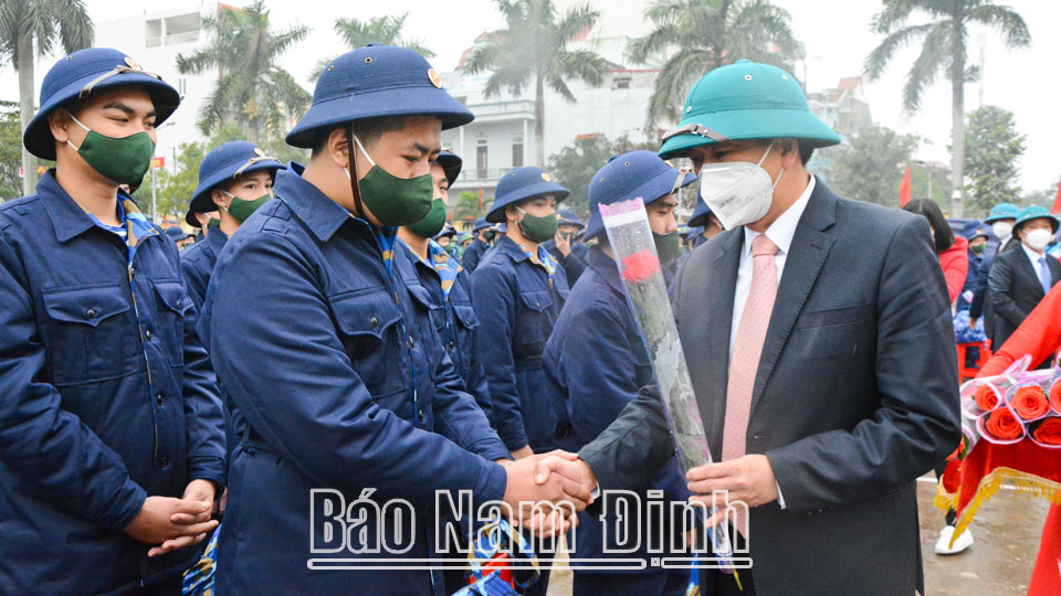 Tại lễ giao, nhận quân, đồng chí Chủ tịch UBND tỉnh Phạm Đình Nghị, cùng lãnh đạo các ban, ngành của tỉnh, thành phố Nam Định đã tặng hoa, động viên các thanh niên phấn khởi, hăng hái lên đường nhập ngũ; đồng thời chúc các tân binh phấn đấu học tập, rèn luyện tốt, chấp hành nghiêm kỷ luật, sẵn sàng nhận và hoàn thành tốt mọi nhiệm vụ được giao, cống hiến sức trẻ để xây dựng và bảo vệ Tổ quốc, xứng đáng với truyền thống cách mạng của quê hương anh hùng.