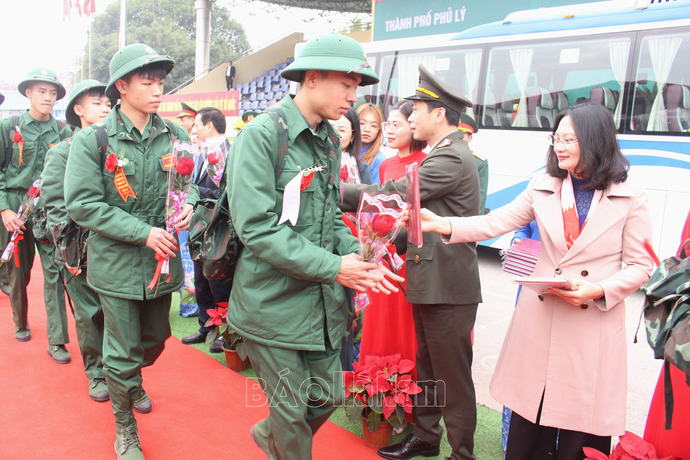 Tại buổi lễ, các đồng chí lãnh đạo tỉnh, lãnh đạo thành phố Phủ Lý đã tặng hoa, quà chúc mừng các tân binh, đơn vị nhận quân và động viên các tân binh nỗ lực rèn luyện, học hỏi, hoàn thành tốt công tác huấn luyện tại đơn vị. Ngay sau buổi lễ, các tân binh phấn khởi lên đường về đơn vị mới.