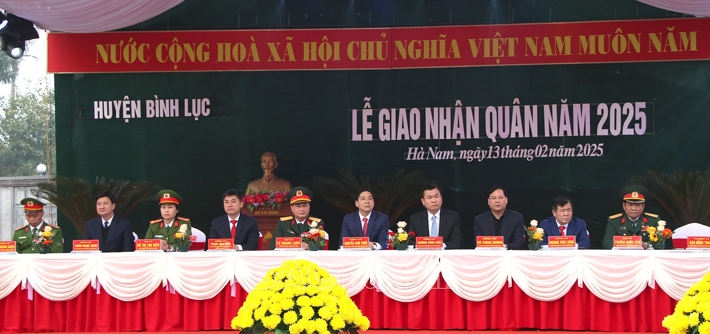 Phát biểu tại buổi lễ giao, nhận quân, lãnh đạo Huyện ủy huyện Bình Lục đã biểu dương và ghi nhận công tác tuyển quân của các xã, thị trấn bảo đảm dân chủ, công khai; thực hiện tốt các khâu thâm nhập, phúc tra nguồn, tổ chức sơ tuyển, khám tuyển, chốt quân số và phát lệnh gọi nhập ngũ; biểu dương tinh thần hăng hái lên đường làm nhiệm vụ bảo vệ Tổ quốc, xây dựng quê hương của các tân binh. Đồng thời, mong muốn các tân binh nỗ lực rèn luyện, tu dưỡng, thực hiện tốt trách nhiệm và nghĩa vụ công dân của mình với Tổ quốc, nhân dân; đề nghị các địa phương làm tốt chính sách hậu phương quân đội, để các tân binh yên tâm lên đường làm nhiệm vụ; các đơn vị nhận quân thường xuyên quan tâm, chăm lo, hiệp đồng chặt chẽ với địa phương trong quản lý, giáo dục, động viên để tân binh phấn đấu, trưởng thành.