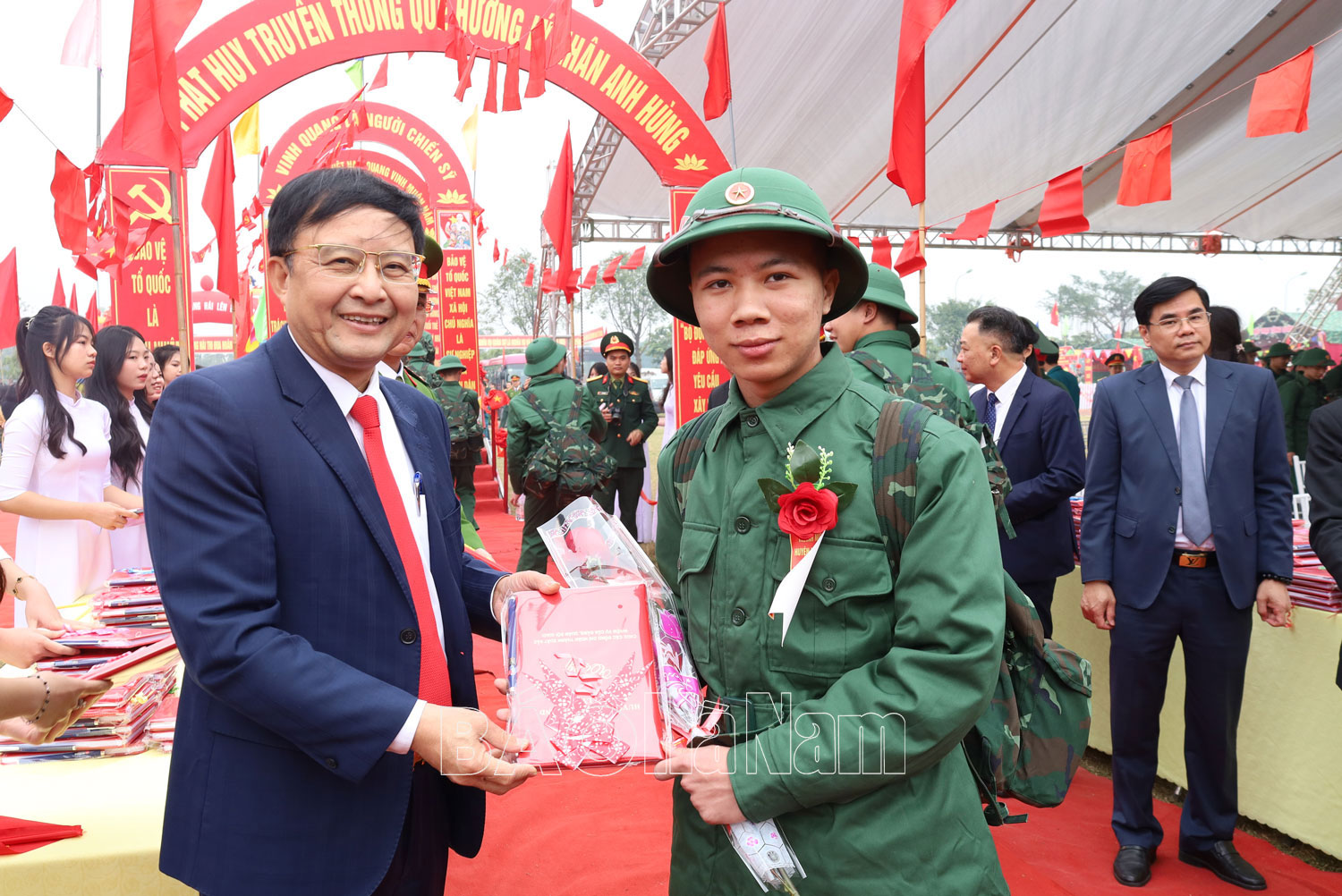 Tại buổi lễ, các đồng chí lãnh đạo tỉnh, lãnh đạo huyện, chỉ huy các đơn vị nhận quân đã tặng hoa chúc mừng các thanh niên trúng tuyển nghĩa vụ quân sự năm 2025 và kỳ vọng các tân binh sẽ phát huy truyền thống của quê hương Lý Nhân Anh hùng, nâng cao ý thức tự giác, tự quản, tự rèn; chấp hành nghiêm kỷ luật, đoàn kết nội bộ, ra sức thi đua góp phần xây dựng đơn vị vững mạnh toàn diện, thực hiện tốt nhiệm vụ Đảng, Quân đội nhân dân, Công an nhân dân và nhân dân giao phó.