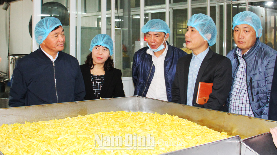 | Đồng chí Phó Chủ tịch UBND tỉnh tham quan mô hình sản xuất cung ứng nông sản sạch tại Công ty Thủy sản Lenger (Thành phố Nam Định). |