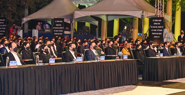 Tham dự lễ tưởng niệm còn có lãnh đạo các ban, bộ, ngành Trung ương, TP Hồ Chí Minh, Hà Nội và các địa phương; cơ quan ngoại giao đoàn; đại diện thân nhân gia đình người dân, cán bộ, chiến sỹ hy sinh, tử vong trong đại dịch COVID-19 cùng đông đảo các tầng lớp nhân dân tại TP Hồ Chí Minh, Hà Nội và các tỉnh, thành.