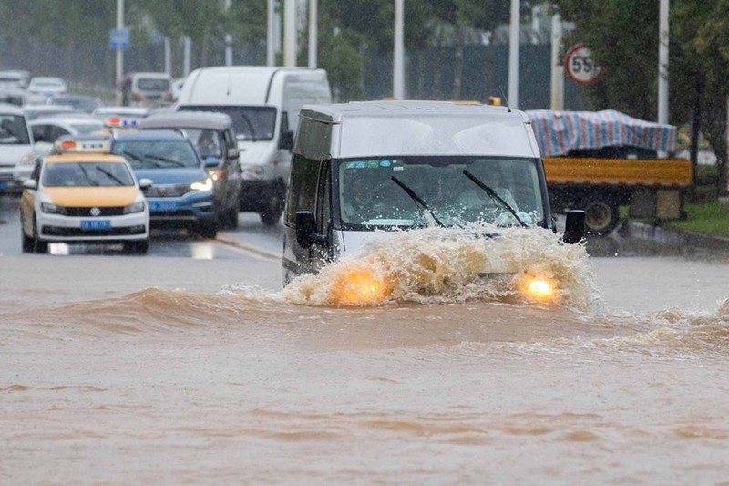 Mưa lớn gây ngập ở Vũ Hán. (Ảnh: China Daily)