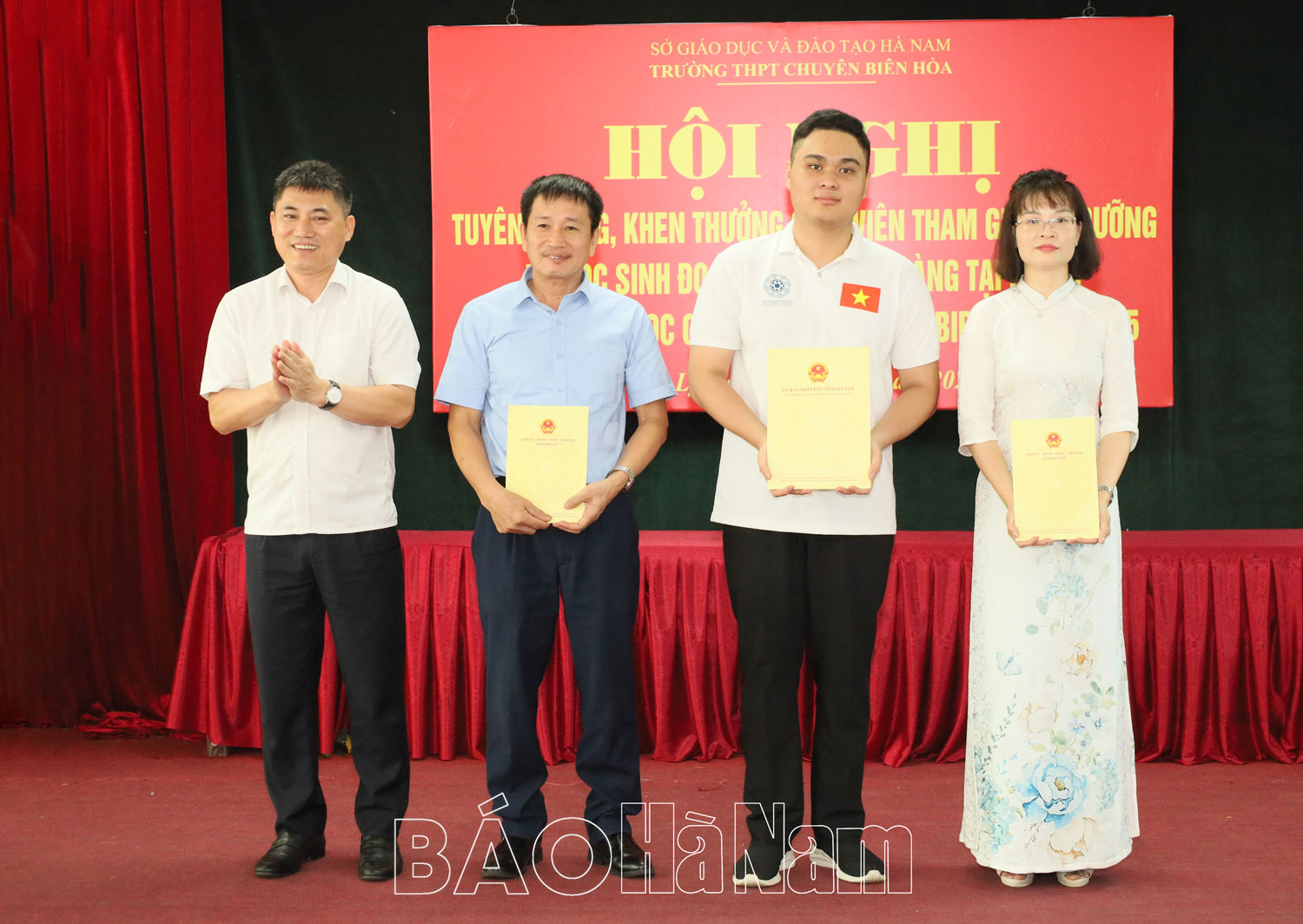 Sáng 23/6, tại Trường THPT chuyên Biên Hòa (thành phố Phủ Lý) đã diễn ra hội nghị tuyên dương, khen thưởng học sinh, giáo viên bồi dưỡng học sinh giỏi Olympic Hóa học quốc tế Abu Rayhan Biruni năm 2025. Dự hội nghị tuyên dương có các đồng chí: Đinh Thị Lụa, Phó Bí thư Thường trực Tỉnh ủy; Trần Xuân Dưỡng, Tỉnh ủy viên, Phó Chủ tịch UBND tỉnh; lãnh đạo Sở Giáo dục và Đào tạo, Hội Khuyến học tỉnh.