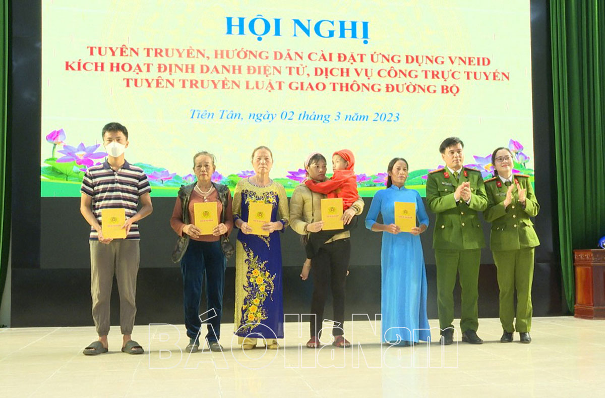 Tại đây, trên 200 cán bộ, hội viên nông dân, phụ nữ cùng cán bộ, giáo viên và học sinh trường THCS Tiên Tân được phổ biến, hướng dẫn các nội dung, tiện ích của Đề án 06 đối với người dân như: Tích hợp, sử dụng tài khoản định danh điện tử thay thế các giấy tờ tuỳ thân; cắt giảm giấy tờ, thủ tục, chi phí cho người dân khi sử dụng tài khoản định danh điện tử thực hiện các dịch vụ công trực tuyến; sử dụng tài khoản định danh điện tử để thực hiện các giao dịch hành chính như: thanh toán hoá đơn tiền điện, nước, bảo hiểm y tế, bảo hiểm xã hội....