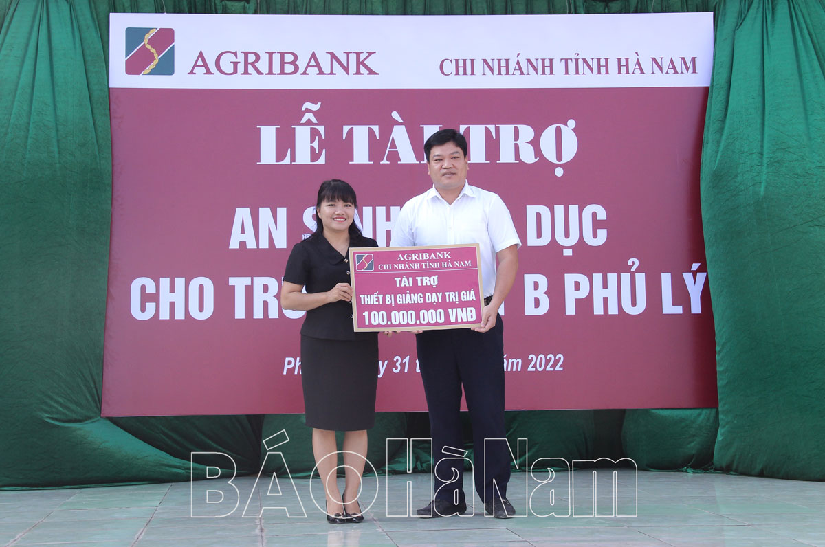 Cũng trong dịp này, Ngân hàng Nông nghiệp và Phát triển nông thôn (Agribank) Chi nhánh Hà Nam đã trao tặng Trường THPT B Phủ Lý gói an sinh giáo dục trị giá 100 triệu đồng. Đây là năm thứ 2 liên tiếp, Ngân hàng Agribank Chi nhánh Hà Nam tài trợ an sinh giáo dục cho Trường THPT B Phủ Lý nhằm hỗ trợ nhà trường trong các hoạt động giáo dục thiết thực.