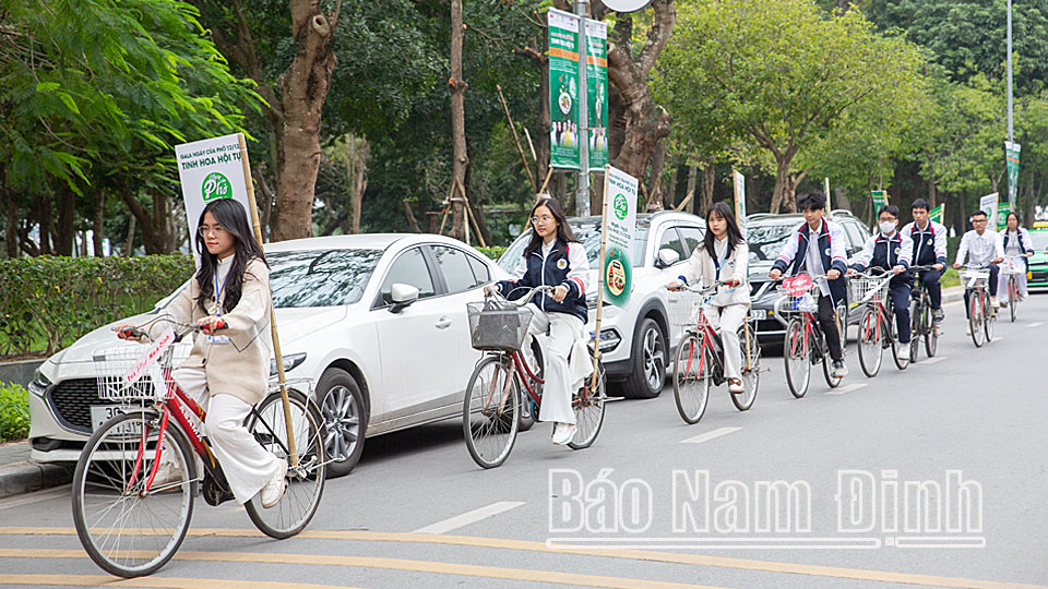 Đoàn diễu hành gồm hàng chục tình nguyện viên điều khiển xe đạp gắn cờ phướn tuyên truyền trên các tuyến phố chính của thành phố Nam Định như: Nguyễn Du, Trần Hưng Đạo, Đông A, Trần Phú, Trường Chinh… Nội dung tuyên truyền nhằm làm nổi bật chuỗi hoạt động với chủ đề “Phở Việt - Tinh hoa hội tụ” được tổ chức tại Nam Định và quảng bá Phở Nam Định tới du khách trong và ngoài nước.