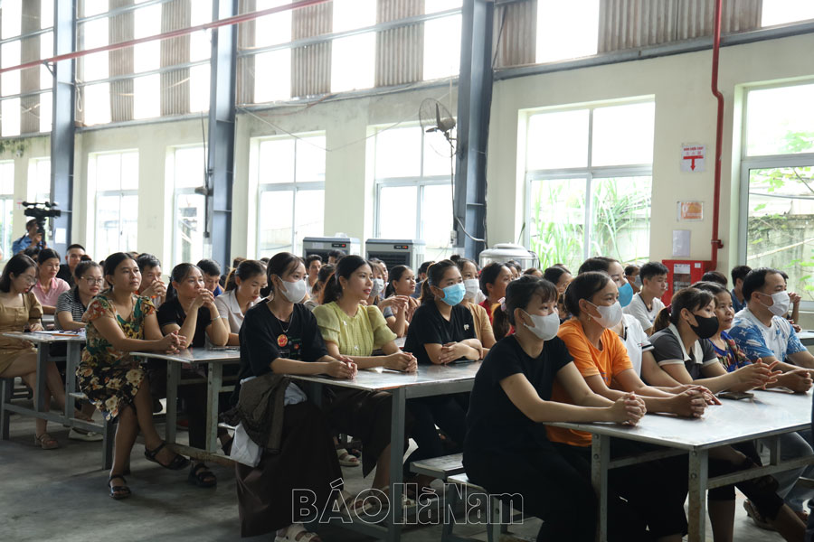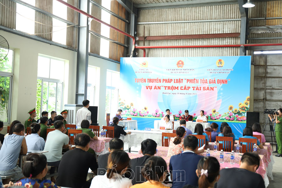 Sáng 31/8, tại Công ty TNHH Victory Sporting Goods Việt Nam (xã Trung Lương, huyện Bình Lục), Liên đoàn Lao động (LĐLĐ), Viện Kiểm sát nhân dân và Công an huyện Bình Lục phối hợp tổ chức tuyên truyền pháp luật “Phiên tòa giả định” vụ án “Trộm cắp tài sản”.