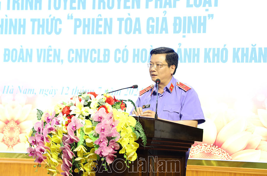 Sáng 12/7, Liên đoàn Lao động tỉnh phối hợp với Viện Kiểm sát nhân dân tỉnh tổ chức tuyên truyền, phổ biến, giáo dục pháp luật trong đoàn viên, công nhân, viên chức, lao động (CNVCLĐ) dưới hình thức “Phiên tòa giả định”. Dự chương trình có đồng chí Nguyễn Đức Toàn, Ủy viên Ban Thường vụ Tỉnh ủy, Bí thư Thành ủy, Chủ tịch HĐND thành phố; lãnh đạo Ban Tuyên giáo, Ban Dân vận Tỉnh ủy, Đảng ủy Khối các cơ quan tỉnh, Đảng ủy Khối doanh nghiệp tỉnh, LĐLĐ, Viện Kiểm sát nhân dân tỉnh cùng đông đảo CNVCLĐ trên địa bàn tỉnh.