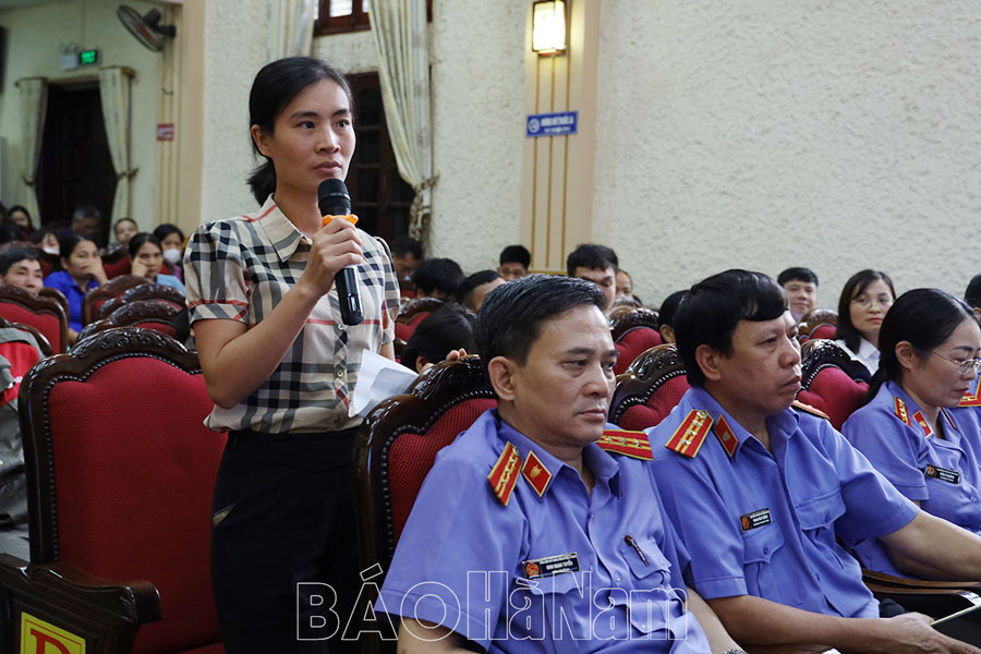 Sau khi phiên tòa giả định kết thúc, báo cáo viên thuộc Viện Kiểm sát nhân dân tỉnh đã tuyên truyền, phổ biến và giải đáp các câu hỏi của CNVCLĐ tại chương trình, giúp mỗi người hiểu rõ hơn về tội “Làm giả giấy tờ của cơ quan, tổ chức” và “Sử dụng tài liệu giả của cơ quan, tổ chức” quy định tại Điều 341 Bộ luật Hình sự năm 2015 (sửa đổi, bổ sung năm 2017).