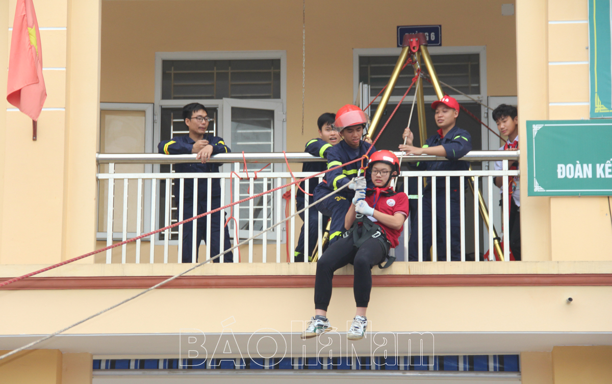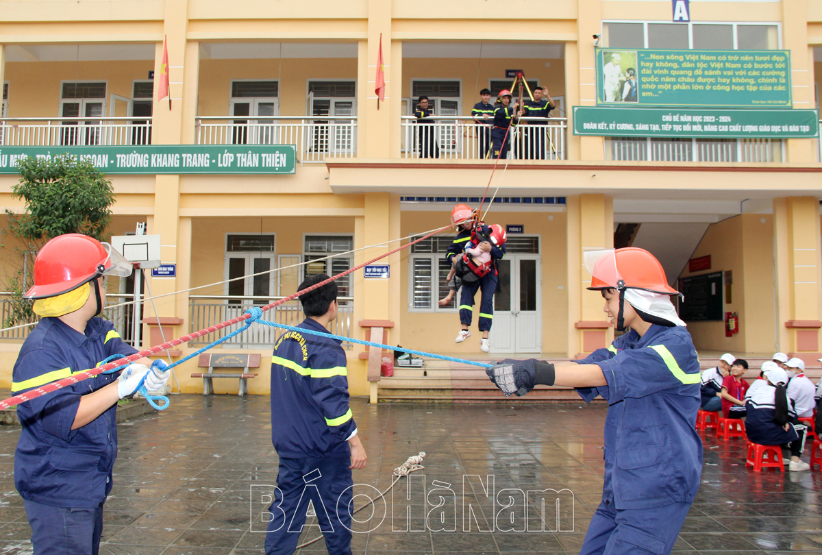 Cùng ngày, Đội Cảnh sát PCCC và CNCH, Công an huyện Bình Lục phối hợp với Công an xã Ngọc Lũ tổ chức tuyên truyền, trải nghiệm, hướng dẫn kĩ năng chữa cháy và CNCH với sự tham gia của 30 cán bộ, giáo viên và 475 em học sinh trường THCS Ngọc Lũ; Công an huyện Lý Nhân tổ chức trải nghiệm, thực hành kỹ năng chữa cháy và CNCH tại Trường mầm non xã Bắc Lý với 367 người tham dự là giáo viên, học sinh và phụ huynh nhà trường...