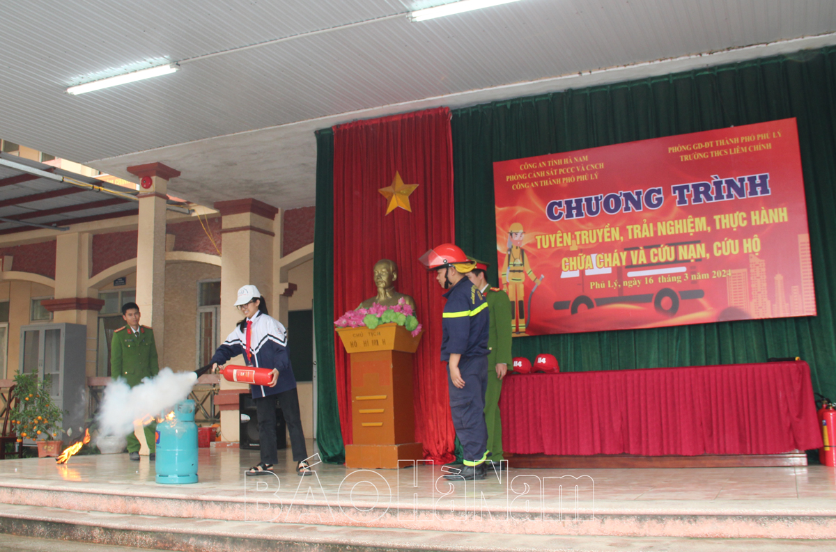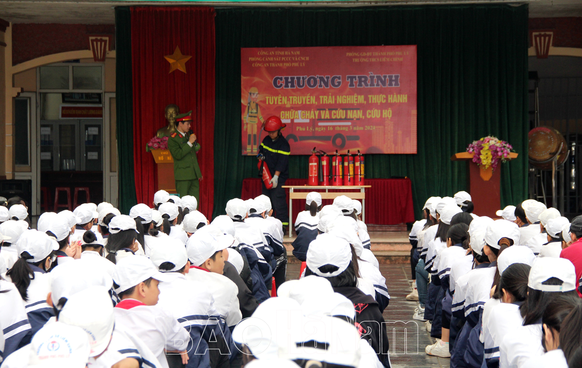 Theo đó, sáng 16/3, Phòng Cảnh sát PCCC và CNCH, Công an tỉnh phối hợp với Công an thành phố Phủ Lý tổ chức chương trình trải nghiệm, thực hành chữa cháy, CNCH cho cán bộ, giáo viên, học sinh, sinh viên trường THCS Liêm Chính, thành phố Phủ Lý và Đại Học Công nghiệp Hà Nội, cơ sở Hà Nam.