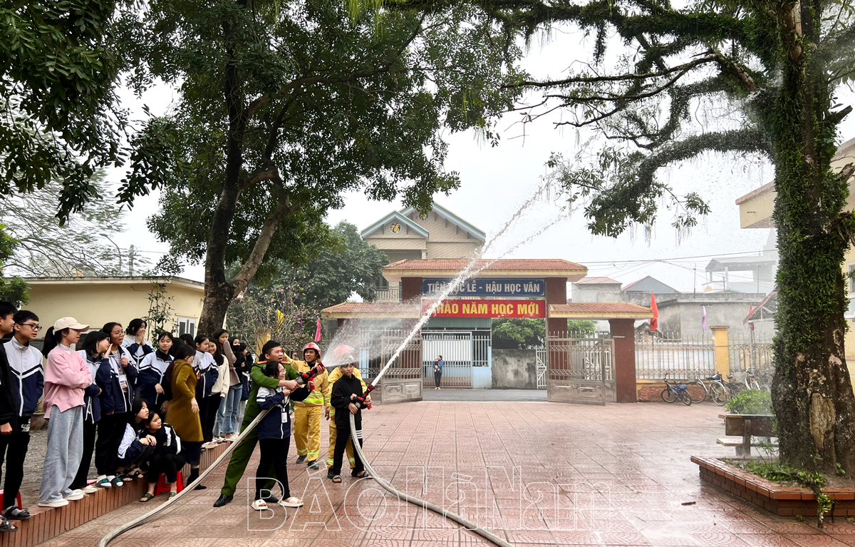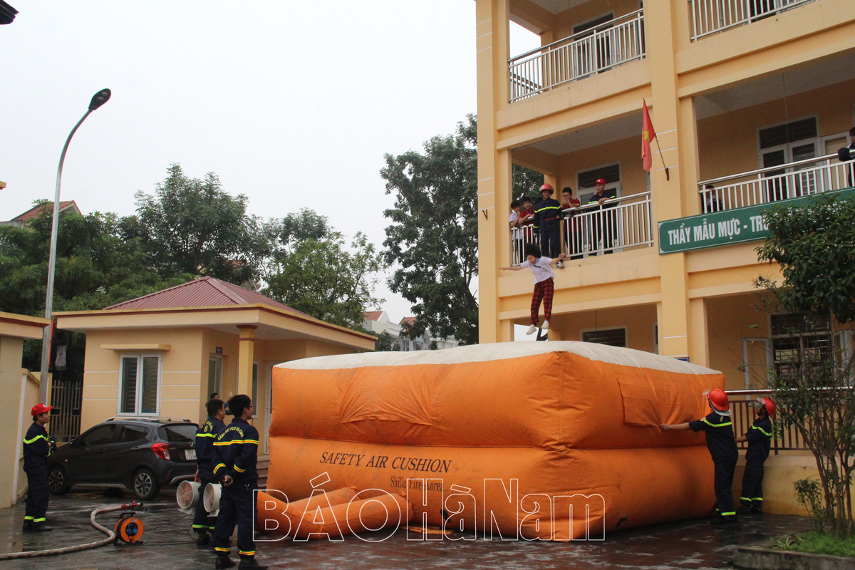 Các em Trường mầm non xã Bắc Lý (huyện Lý Nhân) được hướng dẫn cách di chuyển trong đám khói.Cán bộ Đội Cảnh sát PCCC và CNCH Công an huyện Kim Bảng và Đội PCCC chuyên ngành KCN Đồng Văn IV hướng dẫn các em học sinh Trường THCS Liên Sơn phun nước tiêu điểm.Các em học sinh Trường THCS Ngọc Lũ (huyện Bình Lục) tham gia trả lời câu hỏi về kiến thức PCCC.