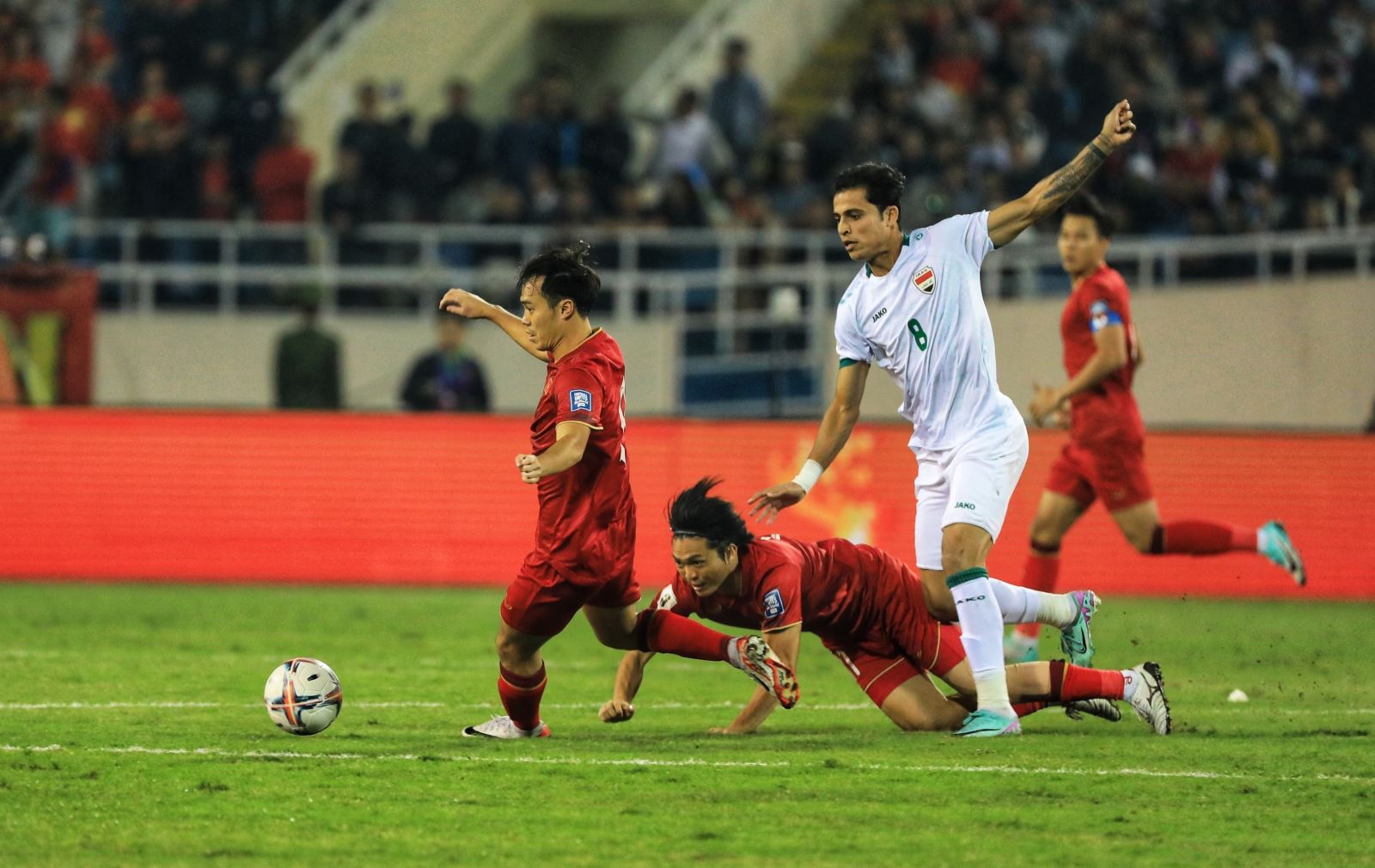 Tuyển Việt Nam đã thi đấu rất nỗ lực để mang về một kết quả tốt trước đội bóng được đánh giá mạnh nhất bảng F là tuyển Iraq ở lượt trận thứ 2 vòng bảng World Cup 2026 - khu vực châu Á. Đúng vào phút bù giờ cuối cùng của trận đấu, thầy trò HLV Troussier phải nhận bàn thua.
