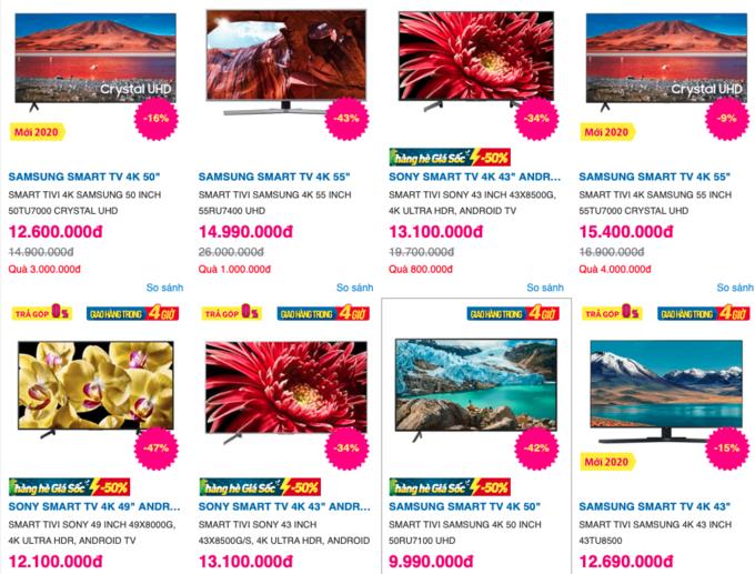 Không chỉ TV ra mắt từ 2018, 2019 hạ giá mạnh để xả hàng, một số mẫu 4K đời mới vừa xuất hiện trên thị trường cũng giảm giá tiền triệu.