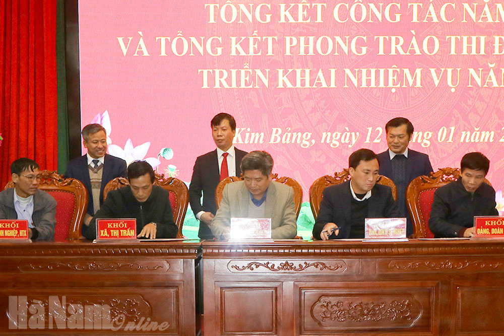 Cùng đó, các phong trào thi đua yêu nước, công tác khen thưởng tiếp tục được đổi mới, thực hiện sâu rộng, kịp thời, toàn diện trên các lĩnh vực, tạo động lực hoàn thành toàn diện và vượt mức các mục tiêu, chỉ tiêu, nhiệm vụ phát triển kinh tế – xã hội, giữ vững an ninh chính trị, trật tự an toàn xã hội. Năm 2020, Kim Bảng tiếp tục dẫn đầu trong Khối thi đua huyện, thành phố, thị xã. Đặc biệt, được Chủ tịch nước phong tặng danh hiệu “Anh hùng Lao động thời kỳ đổi mới”, được đề nghị tặng thưởng Huân chương Độc lập hạng Nhất và Cờ thi đua của Chính phủ.