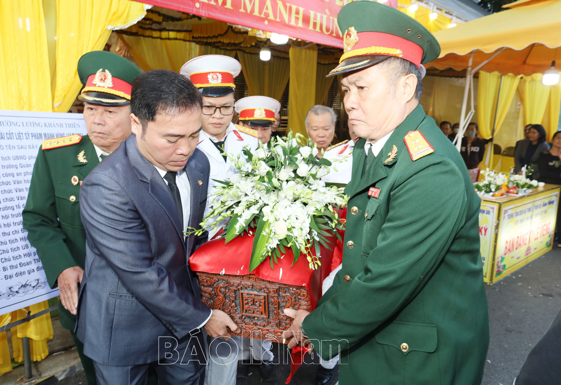 Di quan hài cốt Liệt sỹ Phạm Mạnh Hùng về nơi an nghỉ cuối cùng tại Nghĩa trang liệt sỹ thành phố Phủ Lý.