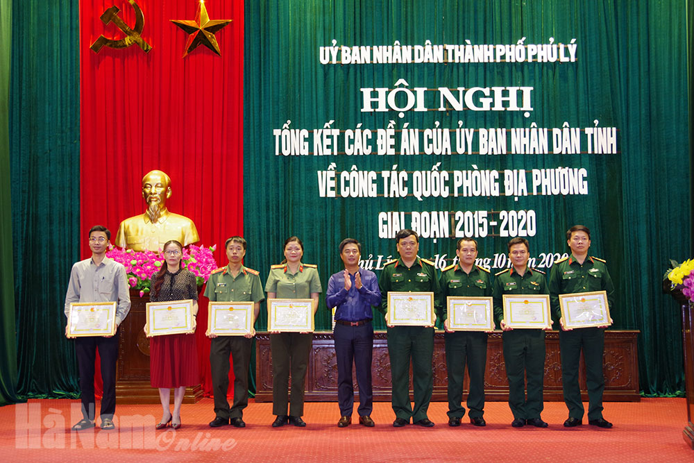 Nhân dịp này, UBND thành phố đã khen thưởng 13 tập thể, 19 cá nhân đạt thành tích xuất sắc trong thực hiện 4 đề án của UBND tỉnh về công tác quốc phòng giai đoạn 2015-2020.