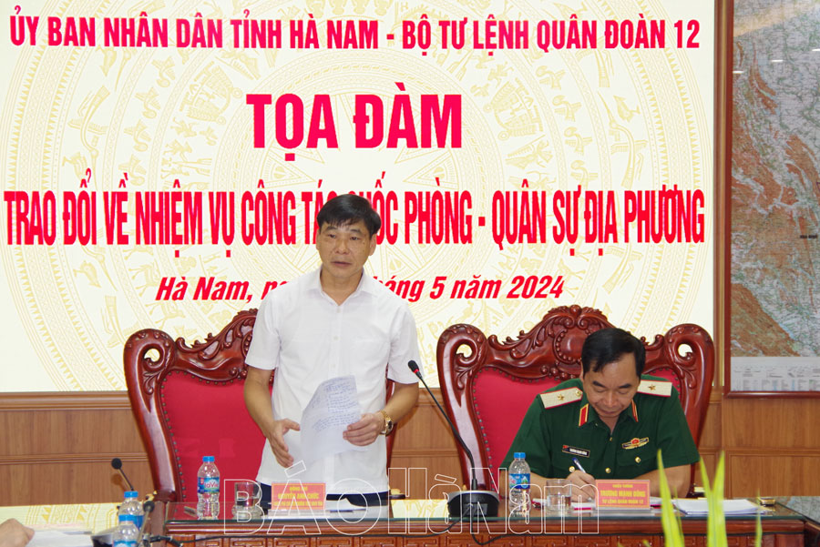 Chiều 22/5, tại Bộ CHQS tỉnh, UBND tỉnh Hà Nam và Bộ Tư lệnh Quân đoàn 12 tổ chức tọa đàm trao đổi về nhiệm vụ quốc phòng – quân sự địa phương (QP-QSĐP).