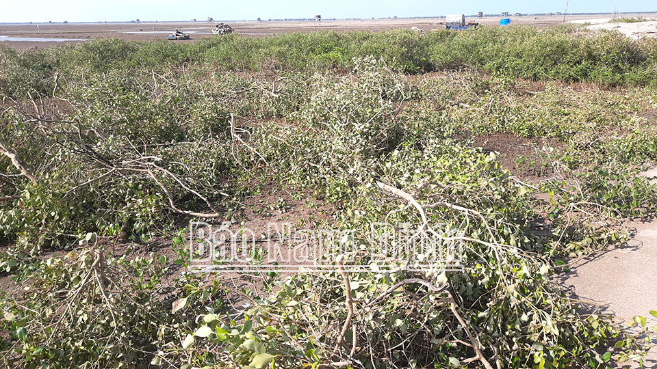 | Hình ảnh cây ngập mặn trên khu vực cồn Lu nằm trong phân khu phục hồi sinh thái thuộc Vườn Quốc gia Xuân Thủy bị chặt phá. |