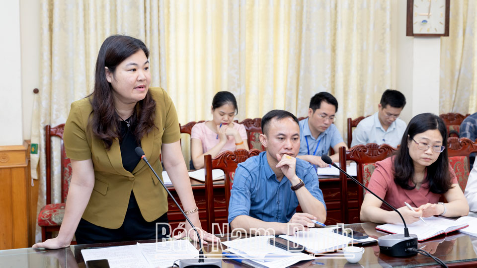 | Đồng chí Hà Lan Anh, TUV, Phó Chủ tịch UBND tỉnh phát biểu tại buổi làm việc. |