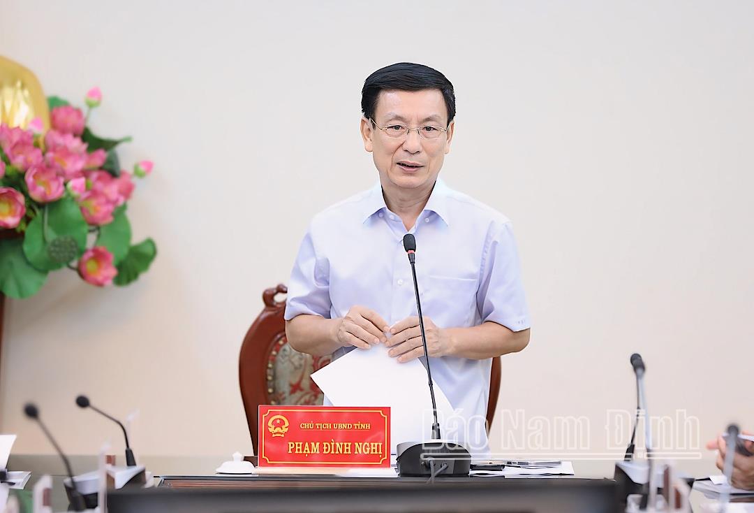 | Đồng chí Chủ tịch UBND tỉnh Phạm Đình Nghị phát biểu kết luận tại cuộc họp. |