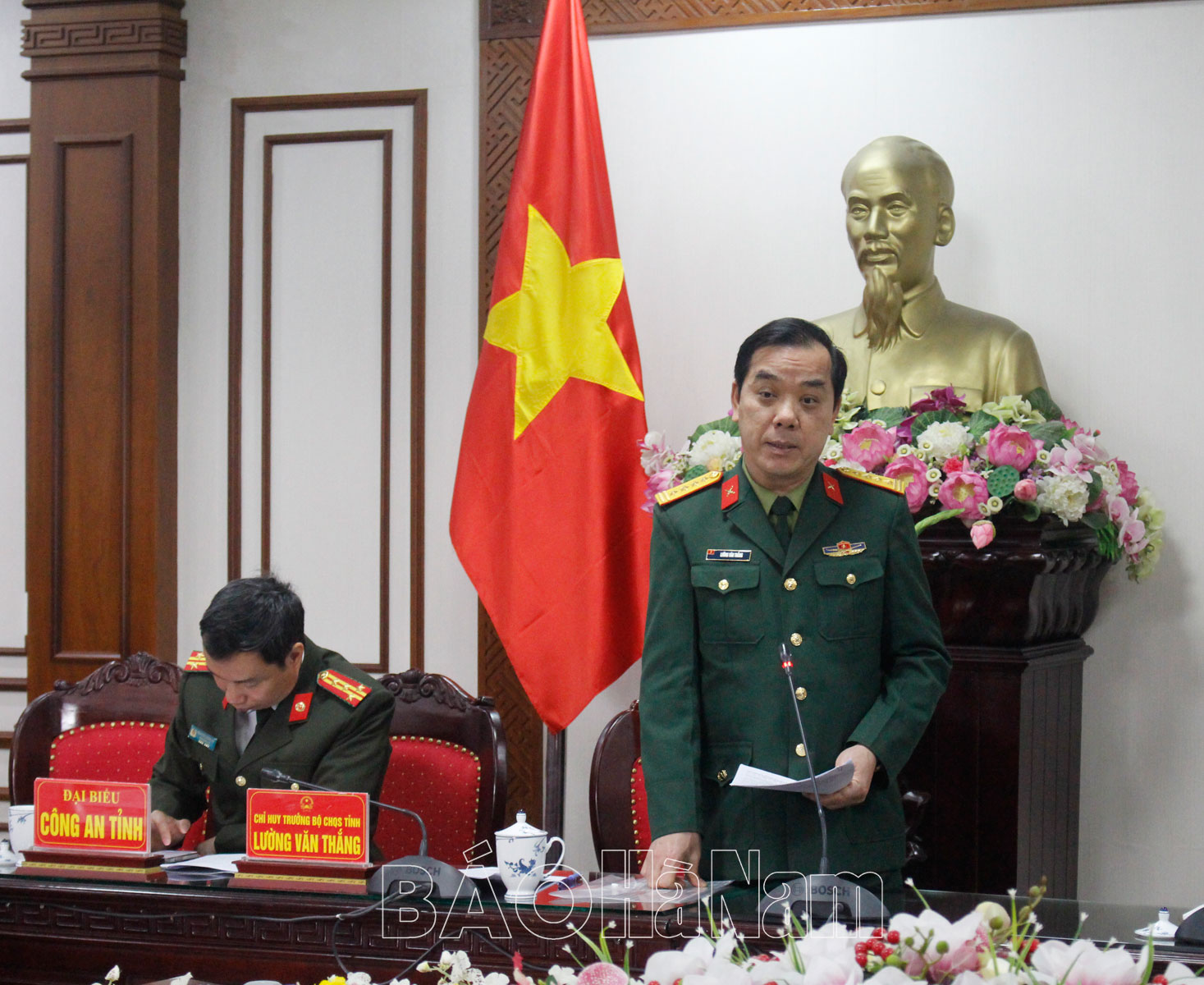 Lãnh đạo Bộ Chỉ huy Quân sự tỉnh phát biểu ý kiến tại hội nghị.