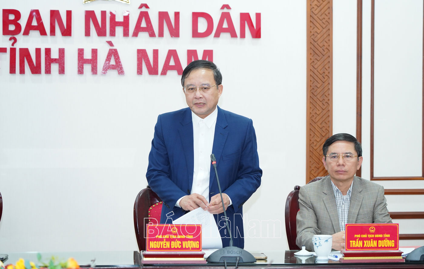 Đồng chí Phó Chủ tịch UBND tỉnh Nguyễn Đức Vượng phát biểu tại hội nghị.