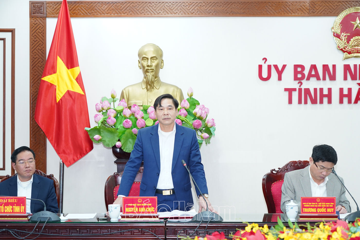Đồng chí Phó Chủ tịch Thường trực UBND tỉnh Nguyễn Anh Chức phát biểu tại hội nghị.