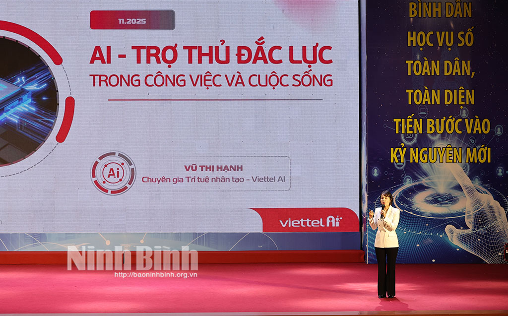 Lực lượng vũ trang tỉnh tiếp tục là lá chắn vững chắc, vừa đi đầu ứng dụng công nghệ số trong quản lý, điều hành, vừa bảo vệ người dân an toàn trên không gian mạng. Cộng đồng doanh nghiệp, doanh nhân hãy là động lực của đổi mới sáng tạo. Chủ động ứng dụng công nghệ số, trí tuệ nhân tạo để nâng cao năng suất, tạo ra các sản phẩm, dịch vụ mới, đưa thương hiệu Ninh Bình vươn xa. Ngành giáo dục, các thầy cô giáo, các em học sinh, sinh viên hãy là những người làm chủ tương lai. Đẩy mạnh dạy và học kỹ năng số, biến công nghệ thành công cụ đắc lực để học tập, nghiên cứu và sáng tạo không ngừng.