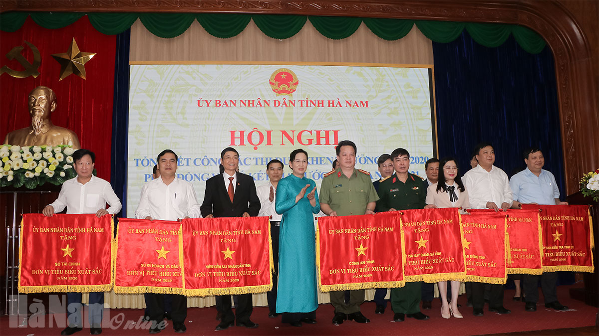 Đồng chí Lê Thị Thủy, Ủy viên Trung ương Đảng, Bí thư Tỉnh ủy, Trưởng đoàn ĐBQH tỉnh trao Cờ thi đua của UBND tỉnh cho các tập thể tiêu biểu xuất sắc trong phong trào thi đua yêu nước năm 2020.Đồng chí Lê Thị Thủy, Ủy viên Trung ương Đảng, Bí thư Tỉnh ủy, Trưởng đoàn ĐBQH tỉnh trao Bằng Khen của UBND tỉnh cho các cá nhân hoàn thành xuất sắc nhiệm vụ từ năm 2019 đến năm 2020.Đồng chí Trương Quốc Huy, Phó Bí thư Tỉnh ủy, Chủ tịch UBND tỉnh trao thưởng và tặng hoa chúc mừng các Khối thi đua đạt thành tích cao năm 2020.