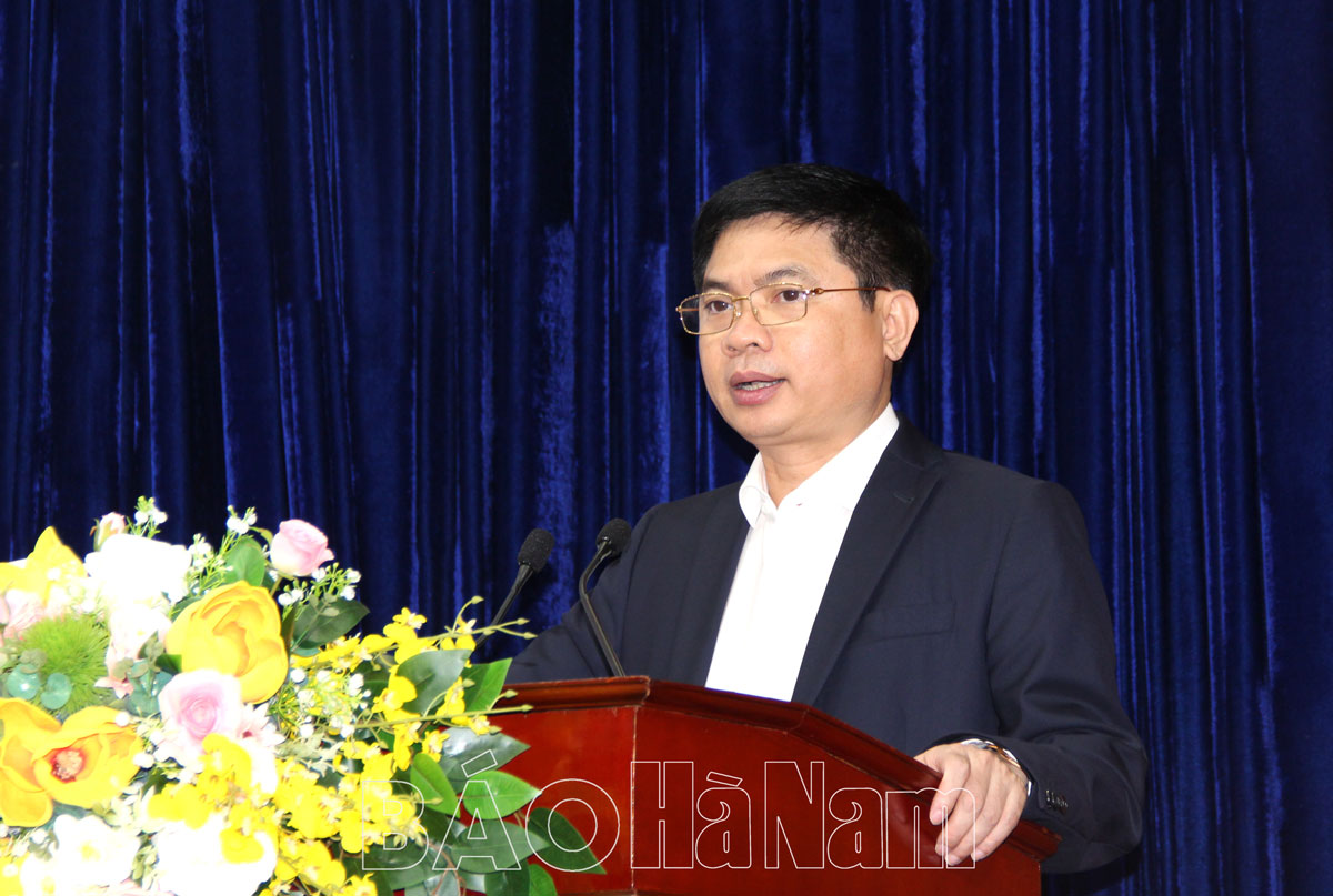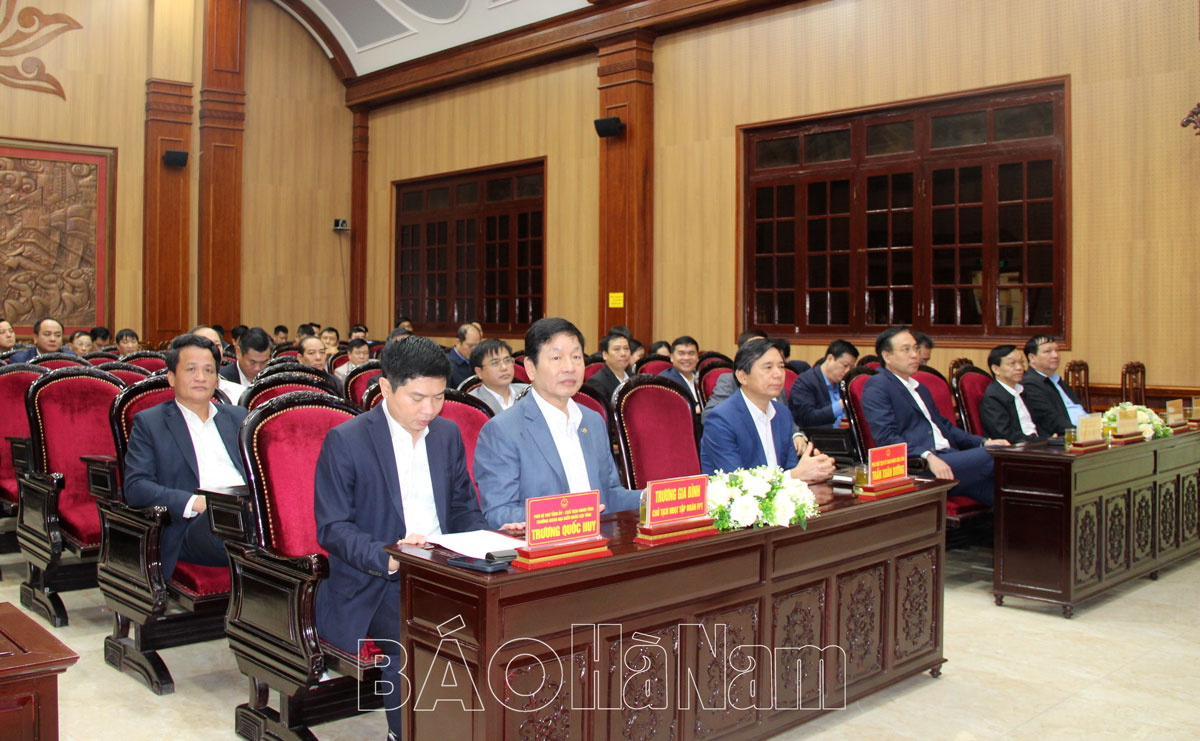 Phát biểu khai mạc hội nghị, đồng chí Chủ tịch UBND tỉnh Trương Quốc Huy khẳng định: Chuyển đổi số là xu thế tất yếu của sự phát triển, không có cá nhân nào, doanh nghiệp nào, tổ chức nào hoặc cơ quan, địa phương nào nằm ngoài xu thế này. Thời gian qua, tỉnh Hà Nam đã đẩy mạnh triển khai Đề án 06 của Chính phủ, kết quả cấp thẻ căn cước công dân đứng thứ nhất toàn quốc, đứng thứ hai về kích hoạt tài khoản định danh điện tử; số hóa tàng thư hồ sơ hộ khẩu, hoàn thành đạt 98,2%; triển khai hiệu quả 25 dịch vụ công thiết yếu của Đề án 06; triển khai thí điểm 2 dịch vụ công liên thông: đăng ký khai sinh - đăng ký thường trú - cấp thẻ BHYT cho trẻ em dưới 6 tuổi, đăng ký khai tử - xóa đăng ký thường trú - trợ cấp mai táng, hỗ trợ chi phí mai táng...