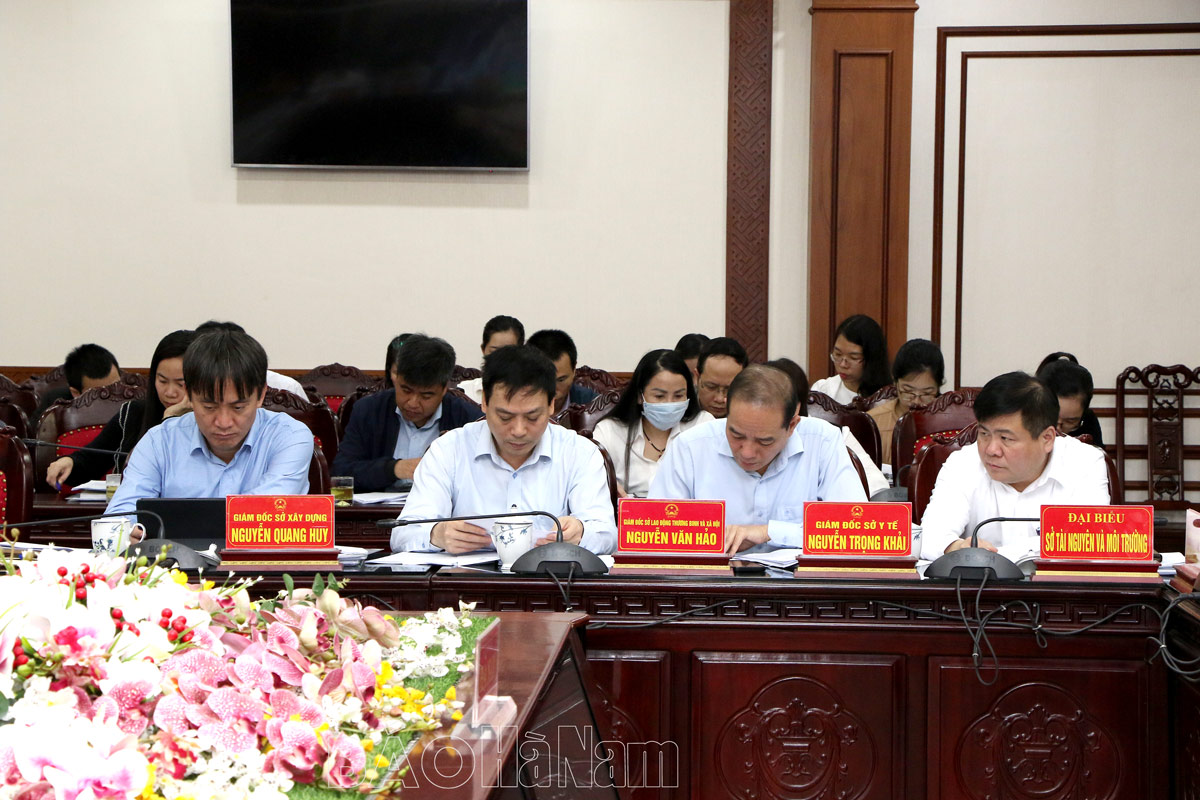 Lãnh đạo Sở Kế hoạch và Đầu tư trình bày các Tờ trình và dự thảo Nghị quyết gồm: Quy hoạch tỉnh Hà Nam thời kỳ 2021- 2030, tầm nhìn đến năm 2050; nhóm Tờ trình và dự thảo nghị quyết về chủ trương đầu tư dự án (gồm 3 dự án: Cải tạo sửa chữa nâng cấp mở rộng Bảo tàng tỉnh Hà Nam; trường THPT C Thanh Liêm; Tuyến đường bộ song hành 2 bên đường vành đai 5- Vùng thủ đô Hà Nội); nhóm Tờ trình và dự thảo nghị quyết về điều chỉnh chủ trương đầu tư dự án (gồm 2 dự án); Nhóm Tờ trình và dự thảo Nghị quyết về vốn đầu tư công...