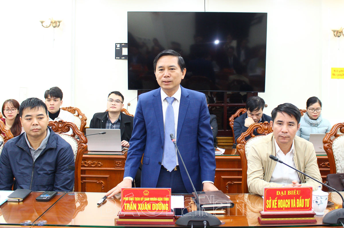 Đồng chí Trần Xuân Dưỡng, Tỉnh uỷ viên, Phó Chủ tịch UBND tỉnh phát biểu tại buổi làm việc.