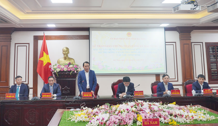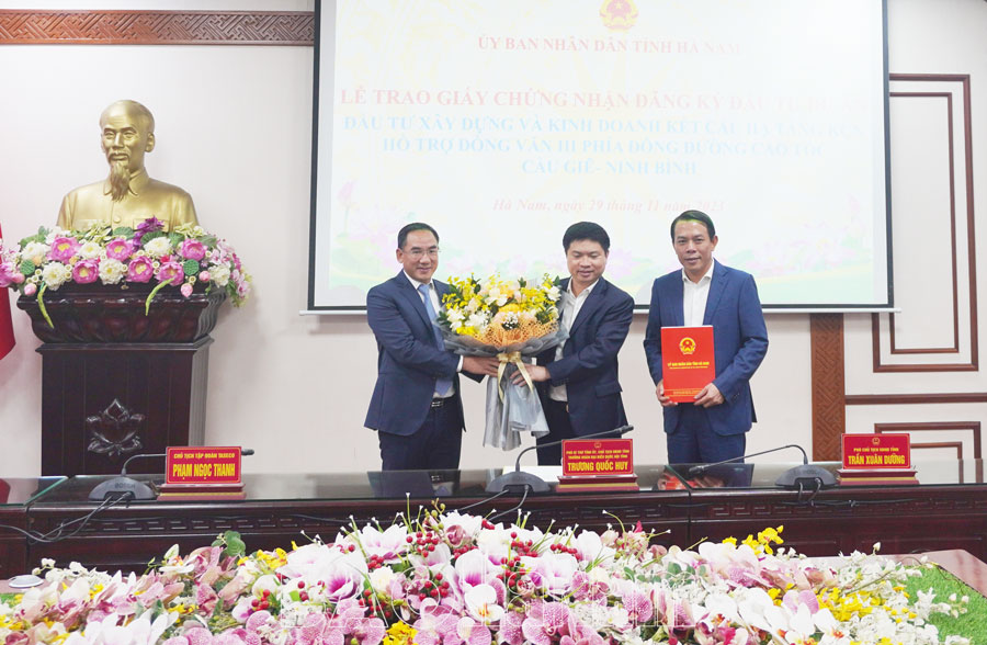 UBND tỉnh trao Giấy chứng nhận Đầu tư xây dựng và kinh doanh kết cấu hạ tầng KCN hỗ trợ Đồng Văn III phía Đông đường cao tốc Cầu Giẽ - Ninh Bình