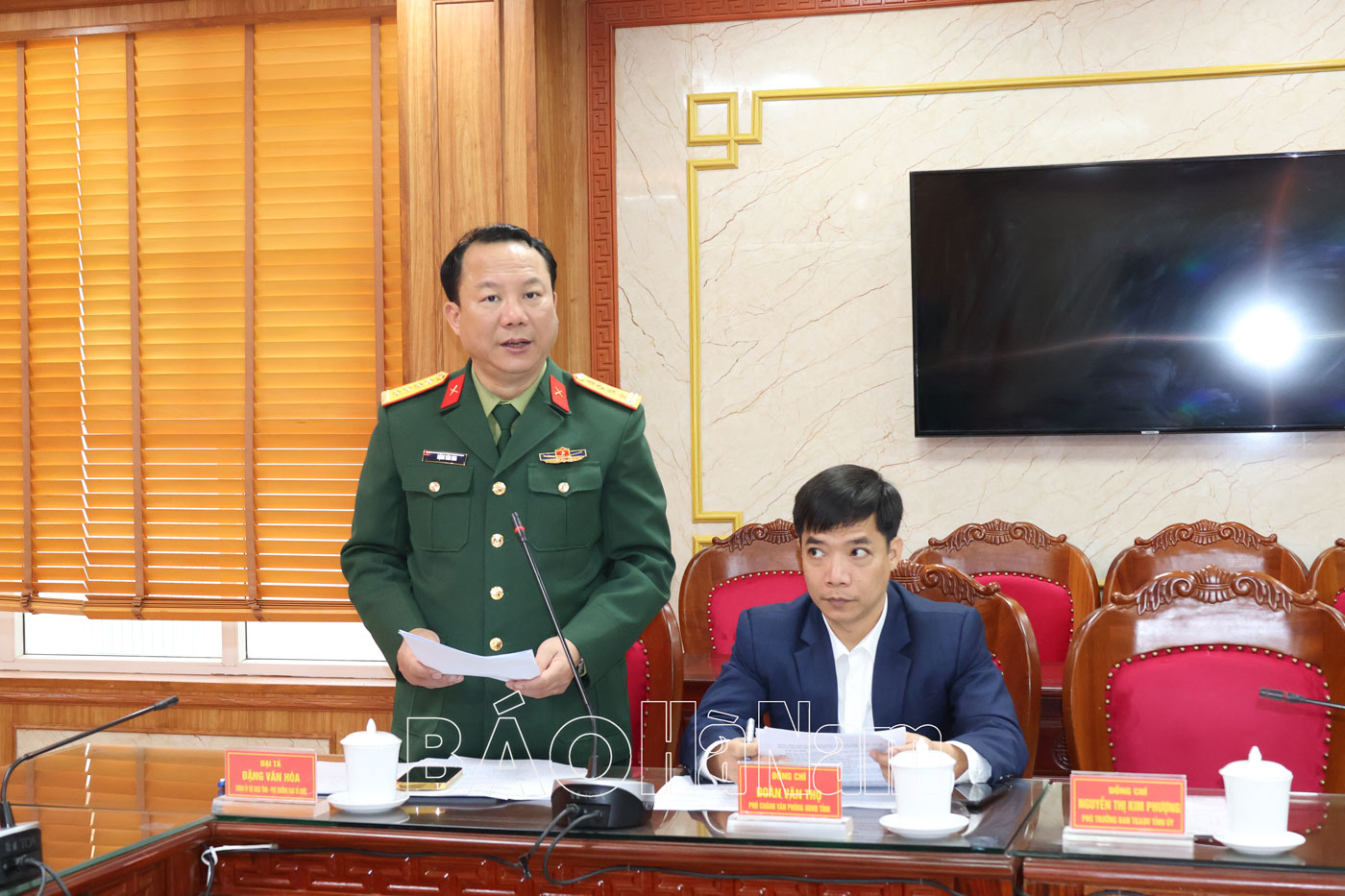 Đại tá Đặng Văn Hòa, Chính ủy Bộ CHQS tỉnh trình bày kế hoạch triển khai các hoạt động kỷ niệm.