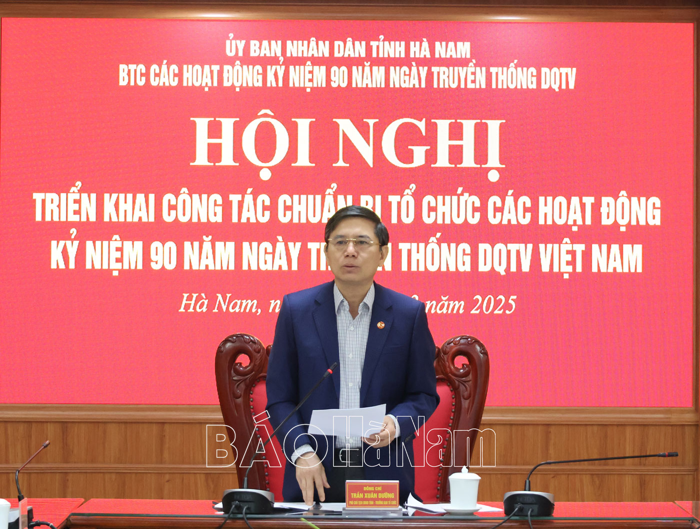Sáng 12/3, UBND tỉnh tổ chức hội nghị triển khai kế hoạch tổ chức các hoạt động kỷ niệm 90 năm Ngày truyền thống dân quân tự vệ (DQTV) (28/3/1935-28/3/2025). Đồng chí Trần Xuân Dưỡng, TUV, Phó Chủ tịch UBND tỉnh, Trưởng Ban Tổ chức các hoạt động kỷ niệm 90 năm Ngày truyền thống DQTV chủ trì hội nghị.