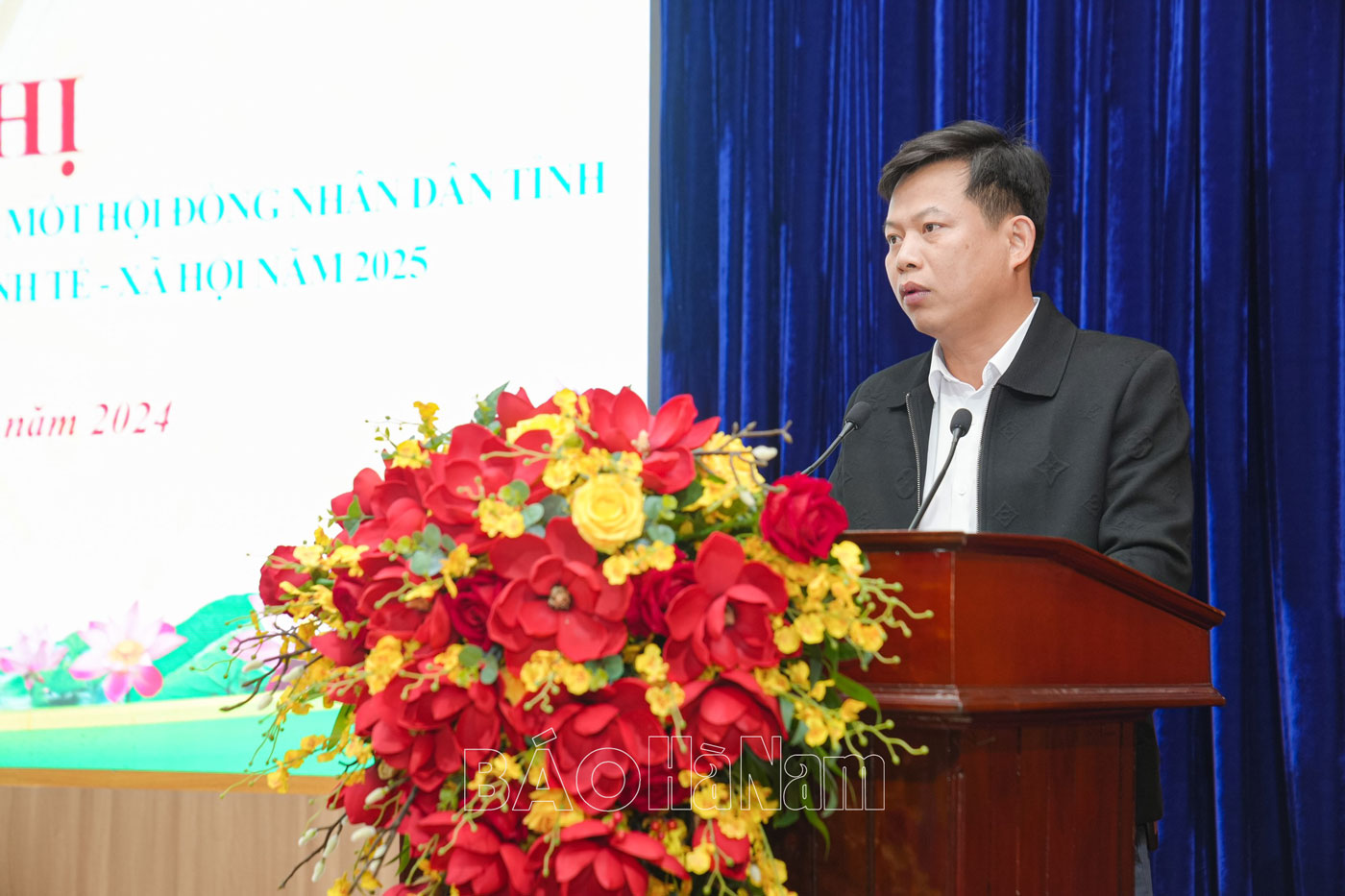 Tại hội nghị, thay mặt lãnh đạo UBND tỉnh đồng chí Nguyễn Anh Chức, Ủy viên Ban Thường vụ Tỉnh ủy, Phó Chủ tịch Thường trực UBND tỉnh đã thông qua báo cáo những nhiệm vụ, giải pháp chủ yếu chỉ đạo điều hành thực hiện nhiệm vụ phát triển KT-XH năm 2025. Trong đó, nêu bật một số kết quả chủ yếu về tình hình KT-XH năm 2024. Cụ thể: năm 2024 với sự chỉ đạo sát sao, toàn diện của Tỉnh ủy, sự chủ động, điều hành sâu sát, quyết liệt của UBND tỉnh, sự nỗ lực của cộng đồng doanh nghiệp, các tầng lớp nhân dân, tình hình KT-XH của tỉnh tiếp tục ổn định, phát triển. Giá trị tổng sản phẩm tăng 10,93% (là tỉnh có tốc độ tăng trưởng cao thứ 5 toàn quốc); dự kiến 16/16 chỉ tiêu KT-XH chủ yếu đều đạt và vượt kế hoạch.