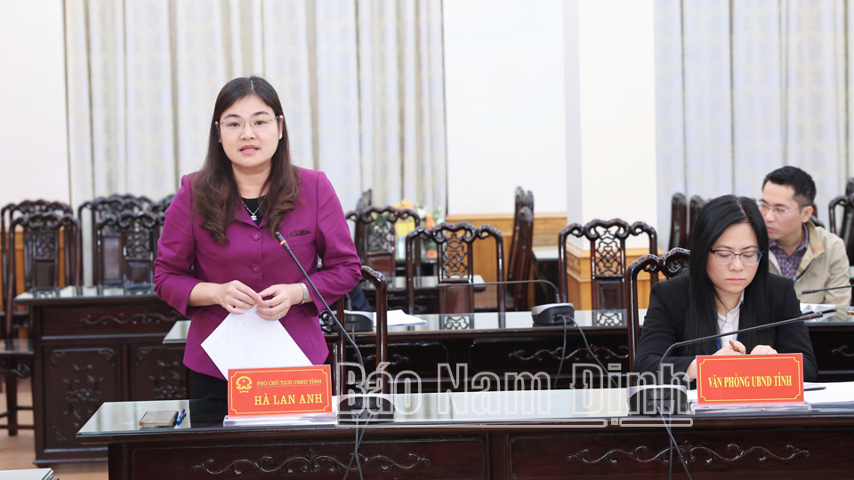 | Đồng chí Phó Chủ tịch UBND tỉnh Hà Lan Anh phát biểu tại hội nghị. |