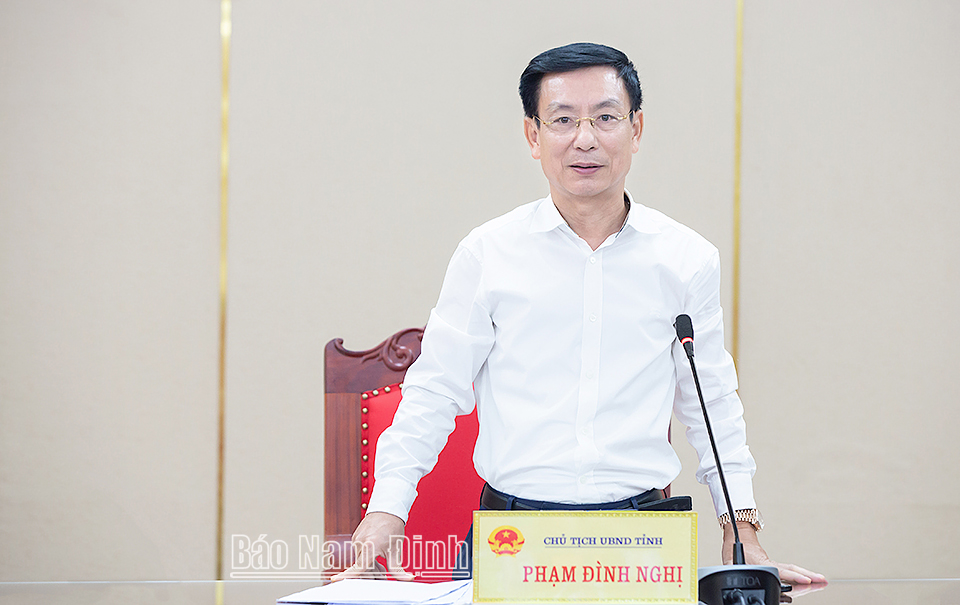 gày 5-10, đồng chí Phạm Đình Nghị, Phó Bí thư Tỉnh ủy, Chủ tịch UBND tỉnh chủ trì hội nghị trực tuyến UBND tỉnh với các huyện, thành phố về tình hình thực hiện nhiệm vụ phát triển kinh tế - xã hội 9 tháng, nhiệm vụ trọng tâm 3 tháng cuối năm 2022. Dự hội nghị có các đồng chí Thường trực HĐND, UBND tỉnh; lãnh đạo các sở, ban, ngành của tỉnh.