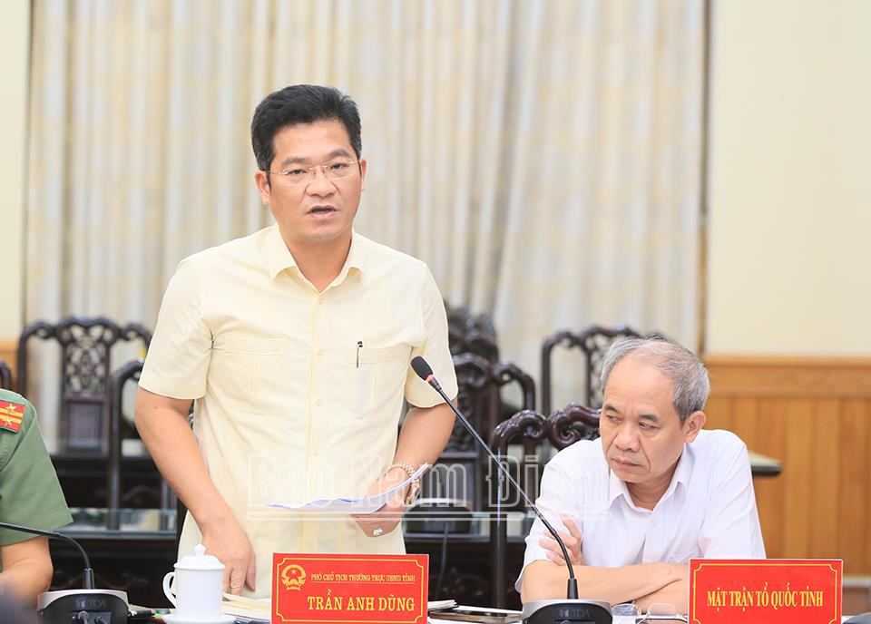 | Đồng chí Trần Anh Dũng, Ủy viên Ban TVTU, Phó Chủ tịch Thường trực UBND tỉnh phát biểu ý kiến tại hội nghị. |