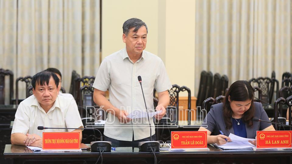 | Đồng chí Trần Lê Đoài, TUV, Phó Chủ tịch UBND tỉnh phát biểu tại hội nghị. |