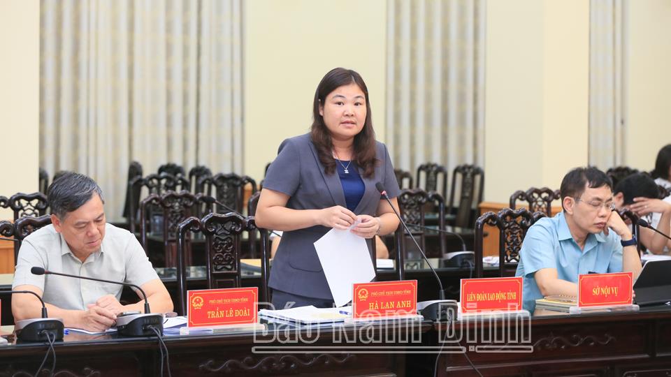 | Đồng chí Hà Lan Anh, TUV, Phó Chủ tịch UBND tỉnh phát biểu ý kiến tại hội nghị. |