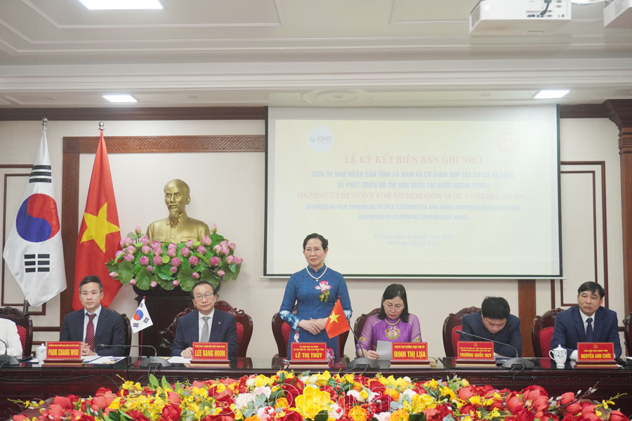 Phát biểu tại hội nghị, đồng chí Lê Thị Thủy, Ủy viên Trung ương Đảng, Bí thư Tỉnh ủy, Chủ tịch HĐND tỉnh khẳng định: Với lợi thế là tỉnh có vị trí địa lý thuận lợi, cửa ngõ phía Nam của thủ đô Hà Nội; có hệ thống hạ tầng giao thông đường bộ, đường sắt thuận tiện; gần cảng biển, sân bay..sẽ là điều kiện thuận lợi để thu hút các nhà đầu tư, trong đó có các nhà đầu tư Hàn Quốc. Tỉnh Hà Nam hướng tới xây dựng Khu công nghệ cao tại huyện Lý Nhân, trong đó có một phần diện tích phát triển khu đô thị thương mại dịch vụ. Đây là điều kiện thuận lợi để KIND và tỉnh Hà Nam phối hợp trong đầu tư phát triển khu công nghệ cao, đô thị thông minh, góp phần phát triển kinh tế - xã hội của tỉnh và nâng cao hiệu quả đầu tư của KIND tại Việt Nam.