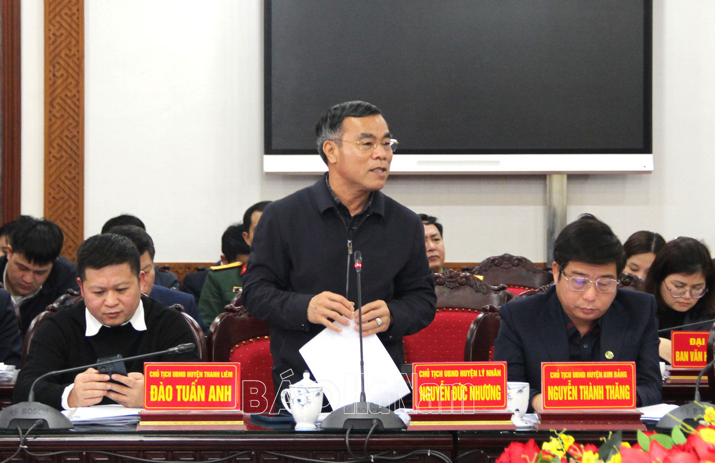 Lãnh đạo UBND huyện Lý Nhân phát biểu tại hội nghị.