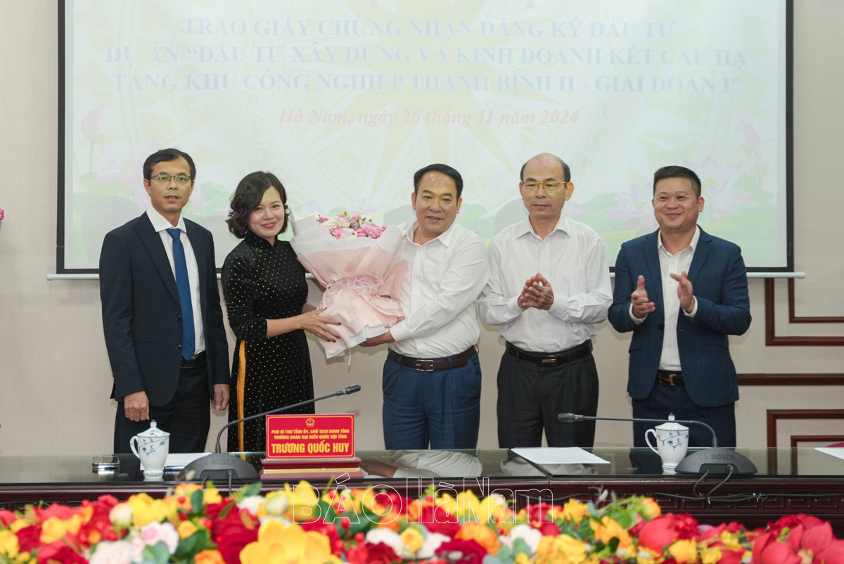 Chiều 26/11, UBND tỉnh tổ chức hội nghị trao Giấy chứng nhận đăng ký đầu tư dự án Đầu tư xây dựng và kinh doanh kết cấu hạ tầng Khu công nghiệp (KCN) Thanh Bình II, giai đoạn I cho Nhà đầu tư là Công ty TNHH Đầu tư phát triển hạ tầng KCN Thanh Bình.
