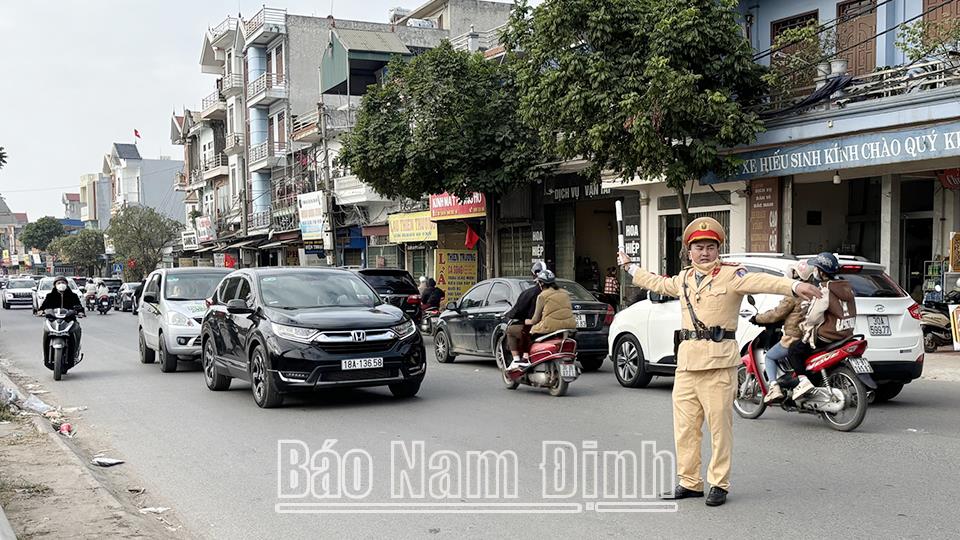 Công an tỉnh đang tổ chức lực lượng phân luồng, điều tiết, tuần tra kiểm soát đảm bảo trật tự an toàn giao thông, tạo điều kiện tốt nhất cho người dân đi lại thuận lợi trong dịp Tết Nguyên đán Ất Tỵ 2025. Trong đó lực lượng Cảnh sát Giao thông (Công an tỉnh) đã huy động hơn 200 cán bộ, chiến sĩ cùng trên 1.000 cán bộ, chiến sĩ Công an cấp huyện, Công an các xã, phường, thị trấn cắm chốt tại các nút giao trọng điểm có đông người và phương tiện qua lại, cửa ngõ ra vào thành phố Nam Định để điều tiết, phân luồng giao thông. Đồng thời, đơn vị bố trí lực lượng Cảnh sát giao thông tuần tra liên tục để đảm bảo trật tự an toàn giao thông, kịp thời phát hiện và xử lý các sự cố trên đường.