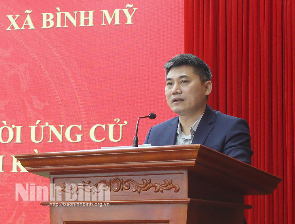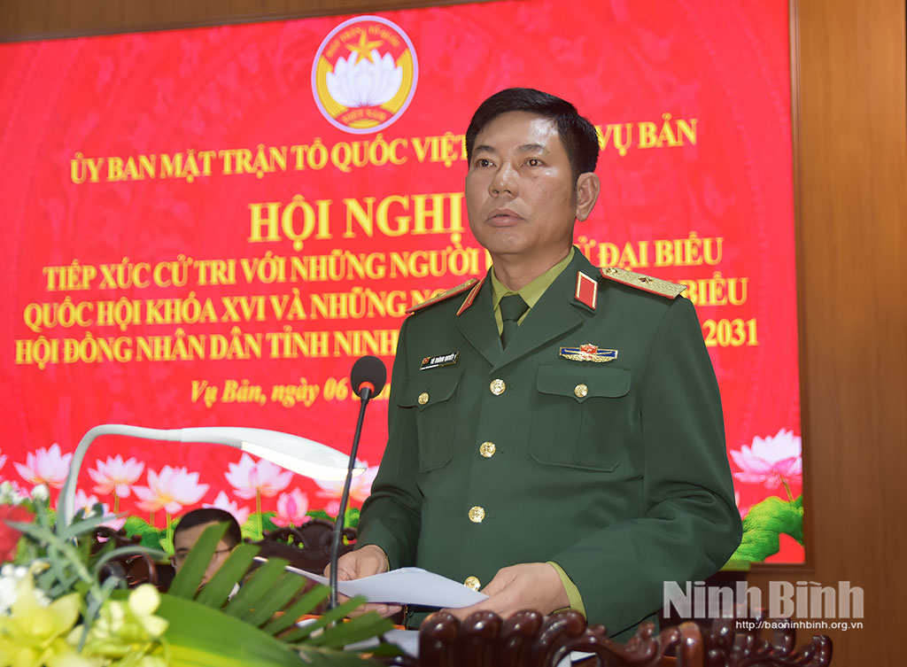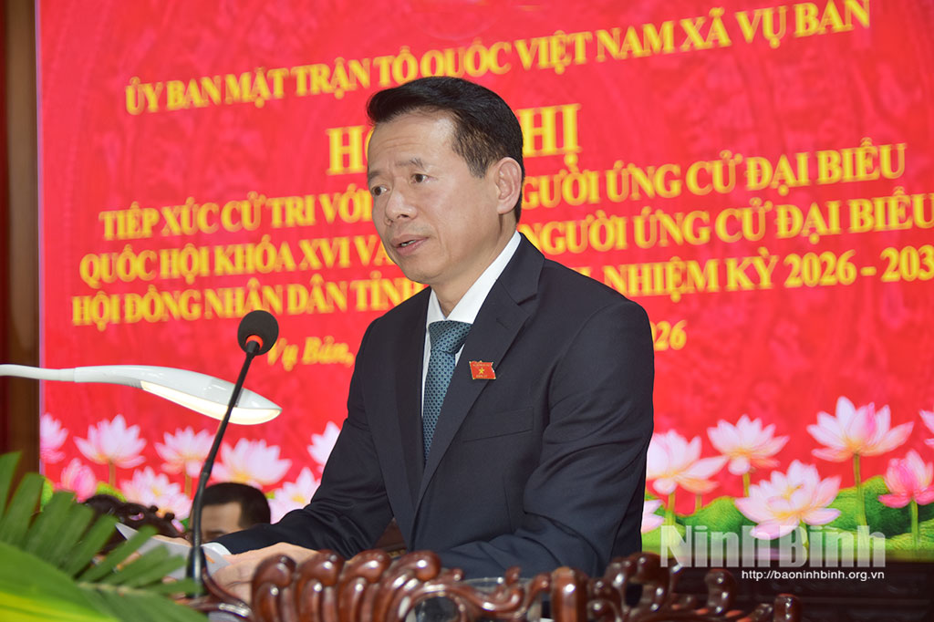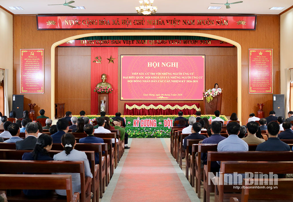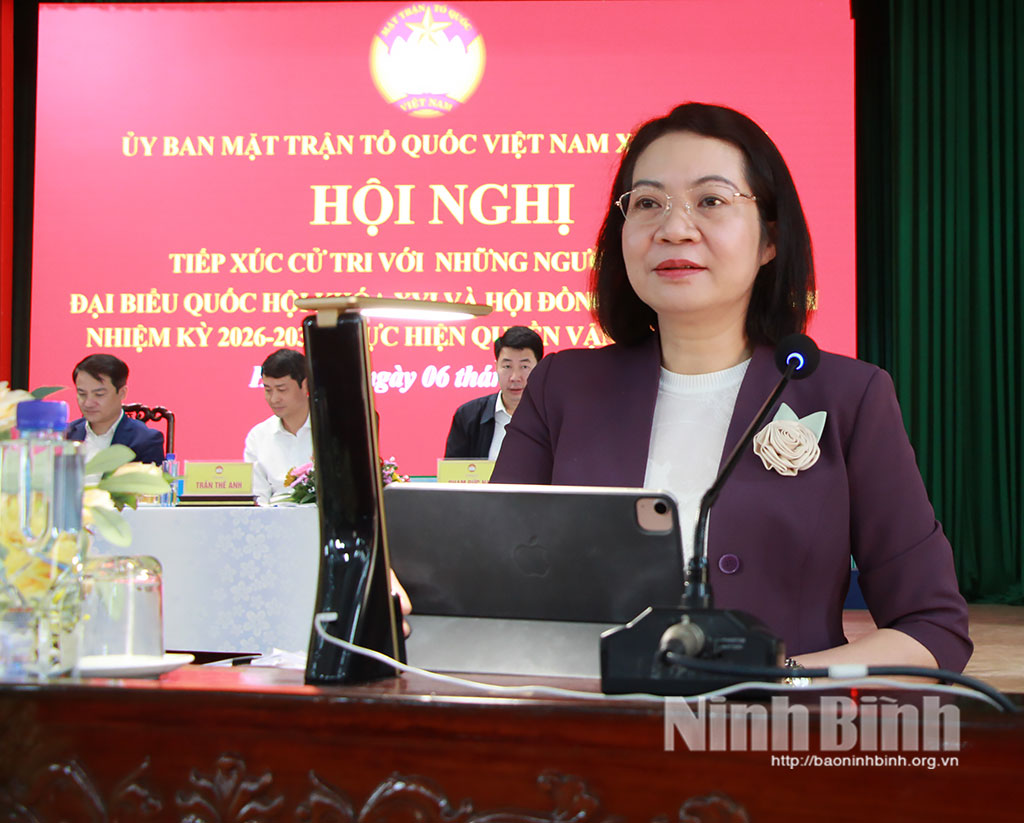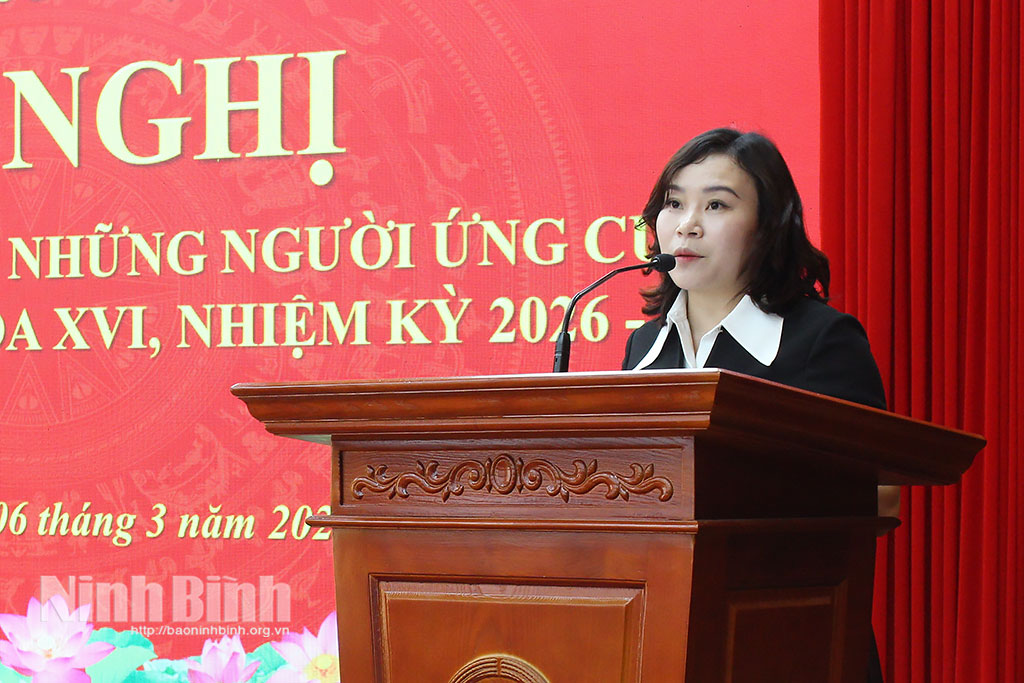 Tại hội nghị, cử tri các địa phương đã nghe tiểu sử tóm tắt và chương trình hành động của 4 ứng cử viên ĐBQH khóa XVI tại Đơn vị bầu cử số 2, gồm các ông, bà: Phạm Hùng Thắng, Tỉnh ủy viên, Phó Trưởng Đoàn chuyên trách Đoàn ĐBQH tỉnh; Phạm Anh Tuấn, Tỉnh ủy viên, Trưởng Ban chuyên trách Ban Văn hóa - Xã hội HĐND tỉnh; Phạm Thị Như Hoa, Phó Bí thư Đoàn trường, giáo viên Ngữ văn Trường THPT chuyên Lê Hồng Phong, Sở Giáo dục và Đào tạo tỉnh Ninh Bình; Vũ Thị Thu Huyền, chuyên viên Ban Tổ chức, kiểm tra cơ quan Ủy ban MTTQ Việt Nam tỉnh Ninh Bình.
